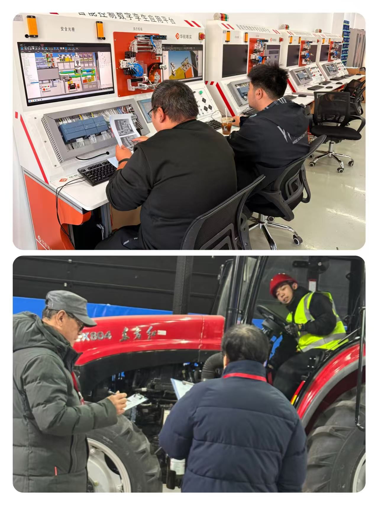 赛场之上,竞争异常激烈。在机器人系统集成关键任务中,面对错综复杂的线路布局与毫厘之间的精密操作要求,吴国晨、刘浡两位同学沉着冷静、精准研判,以娴熟的编程技巧高效破解技术难题;张云鹤、周湘两位同学默契配合、无缝衔接,有条不紊地完成集成测试与调试工作;赵泽宇、郑嘉庆两位同学在工业互联网设备安装调试、数据采集系统及应用等模块中,凭借扎实的基础,出色的完成了竞赛任务;王宇浩和公丕源在大型轮式拖拉机故障检测、诊断和发动机拆装与测量模块中展现出过硬本领,精准定位故障点并高效完成发动机拆装与测量。团队成员稳定的临场发挥与科学的系统协作,在众多参赛队伍中脱颖而出,用实力诠释了新时代青年学子的专业素养与奋进姿态。