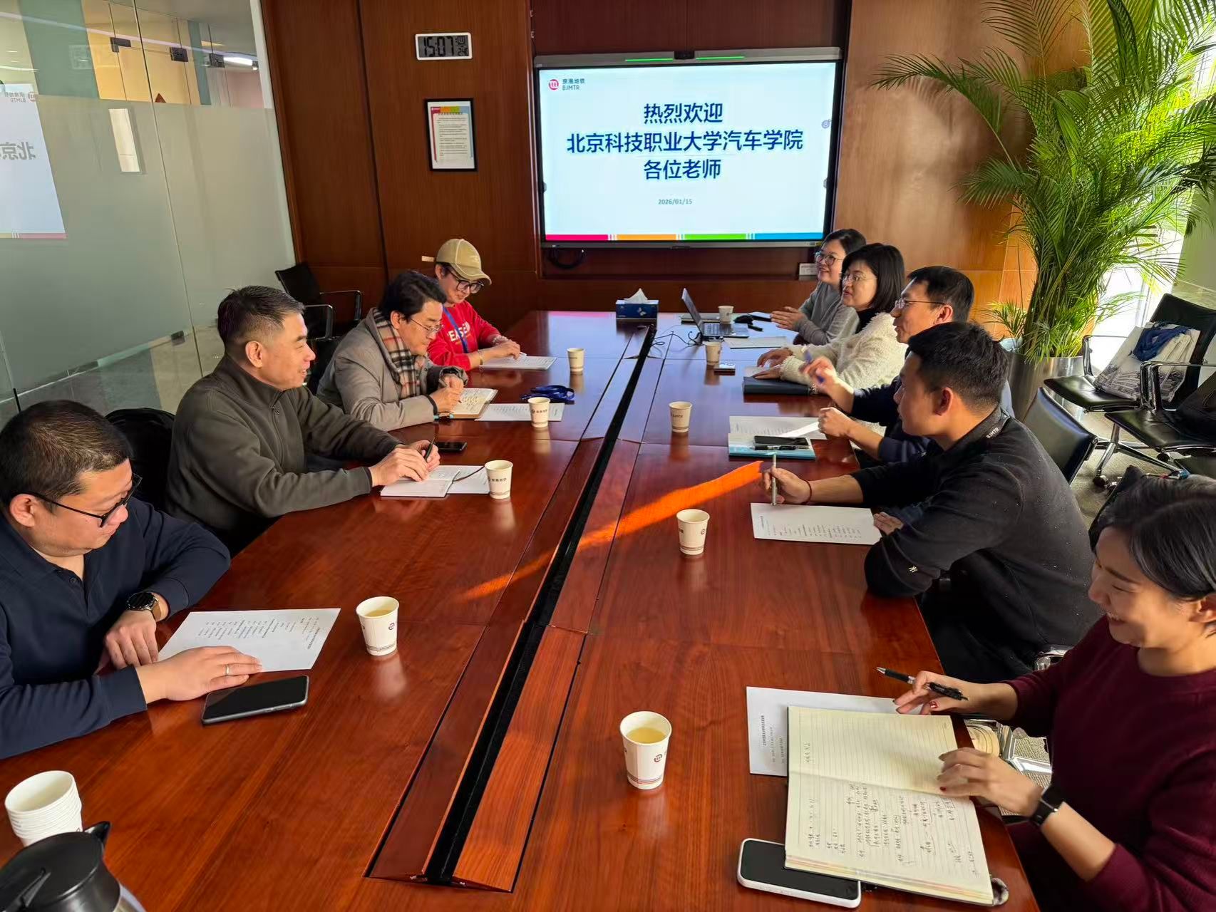 在京港地铁总部,公司人力资源客户服务部经理谈晶、工程培训部经理邵澎涛及人力招聘、运营技术部门相关负责人对BEAT365教师的到访表示热烈欢迎。在交流会上,谈晶详细介绍了京港地铁的发展历程、卓越的企业文化、先进的运营管理理念以及面向未来的战略规划。她回顾了京港地铁多年来与BEAT365的密切合作,对进入京港工作的BEAT365毕业生的素质与能力给予了充分的肯定。同时,她特别强调,随着北京轨道交通网络的持续加密与智慧化升级,公司对人才需求已经从“量”转变为“质”的要求,今后将更需要掌握扎实专业知识,又具备良好职业素养和实践创新能力的高层次技术技能人才。