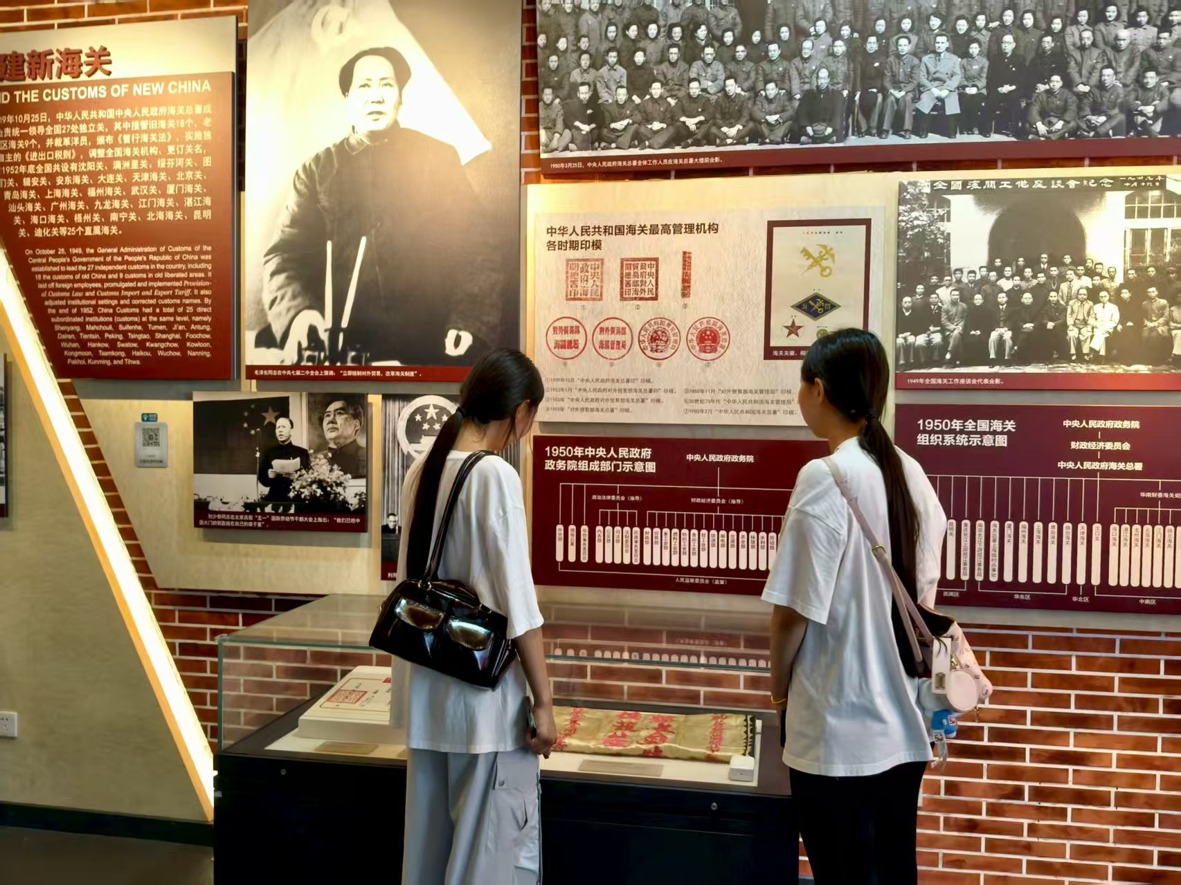 同样位于地铁1号线的建国门站出来步行不到300米就可以来到海关博物馆。它见证国门风云的时光长廊,是一座记录中国海关600年历史的专题博物馆。馆内珍藏3000余件文物,从清代大龙邮票到现代缉私装备,串联起海关从古老榷关到现代国门守护者的演变历程。 实践团实地走访发现离地铁站100处就设有标志牌指引,方便参观游客快速走到博物馆参观,扩大传播范围。