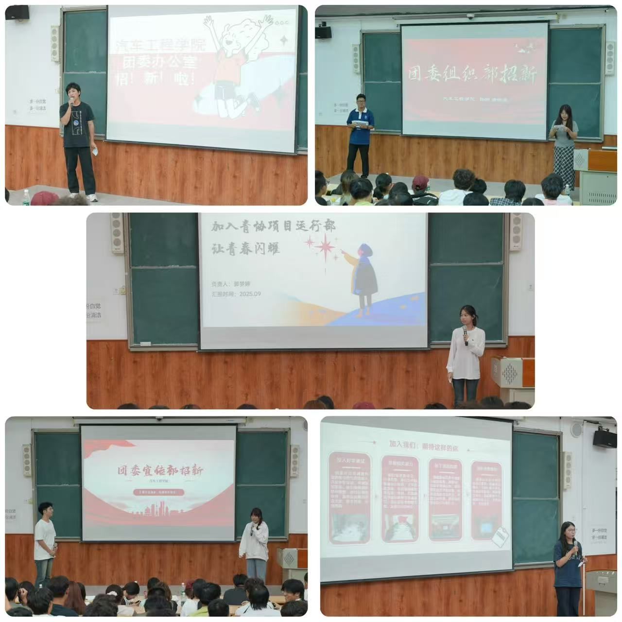 团学组织招新宣讲会的成功举办,系统展示出学院团学组织工作,有力激发2025级新生的参与热情。新一届团学组织招新工作即将全面启动,学院团委和学生会热切期待每一位有志新生的加入,共同为团学工作挥洒青春汗水,服务广大同学,携手书写汽车工程学院学生工作的新篇章!