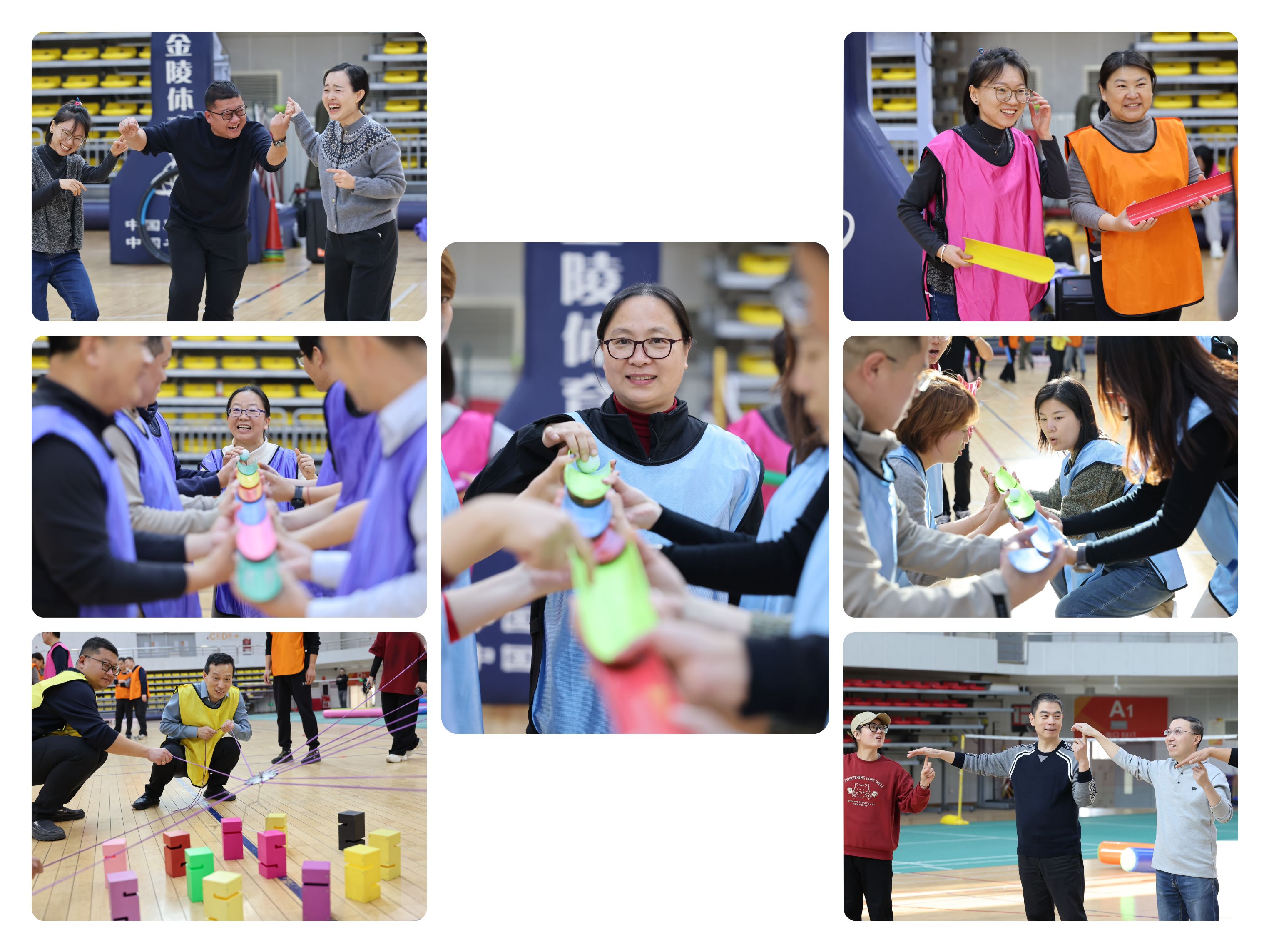 本次活动将65名会员按部门分为5支队伍,依次进行了“不倒森林”“精益求精”“一圈到底”“能量传输”和“合力搭建”五项趣味协作项目。现场气氛热烈、融洽有序,各队成员默契配合、奋勇争先,在欢笑与鼓励中进一步加深了彼此的了解与信任,生动展现出学院教职工团结协作、昂扬向上的精神风貌。