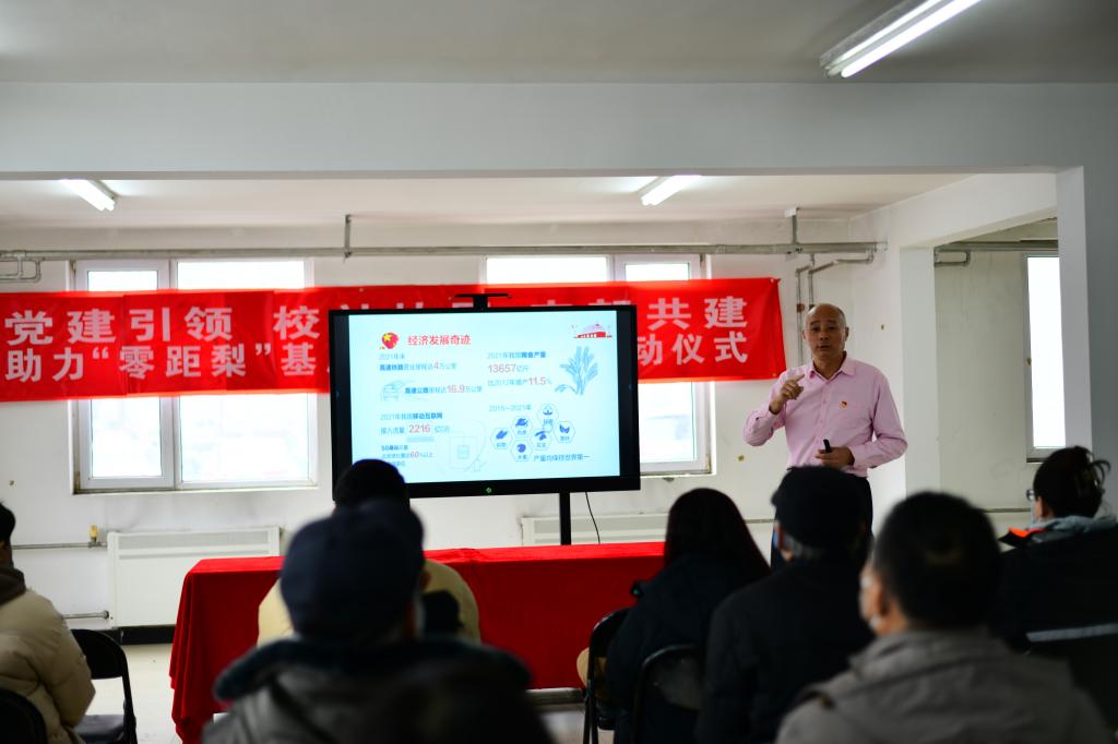 2月10日,怡然社区党支部与汽车工程学院学生党支部共同举行“党建引领 校社协同 支部共建 助力‘零距梨’基层治理新实践”启动仪式,怡然社区党支部书记陈小波与学生党支部书记王晗璐现场签署合作意向书。梨园镇党委副书记丛莉芸,副镇长张葛、汽车工程学院党总支书记李刚参加启动仪式,一同见证协议签署。