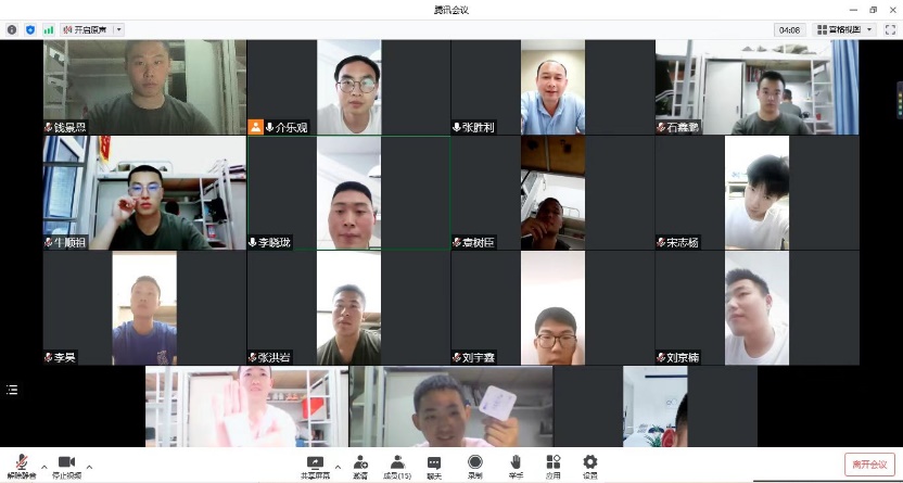 介乐观老师负责的学生群体是士官生,属于京外同学,面对前段时间全国疫情散发的现状,他每天提醒督促同学们按时完成i电科健康打卡,针对学生所在区域有确诊病例或密接等情况,一对一沟通,详细了解疫情防控细节,叮嘱学生遵守社区要求,做好防护;为了加强朋辈沟通,增进同学情谊,介老师以宿舍为单位开展线上云聚会,认真倾听每名同学居家学习、军事训练、春耕夏收等情况,并针对同学们反馈的信息进行点评、提出要求,尤其对于家庭经济情况不太好的同学,重点关注生活学习上的困难,做好引导、鼓励;在上课和训练方面,介老师每天也会进入课堂,关注同学们是否正常上课、开启视频,训练是否认真,发现不良苗头或异常情况会第一时间和同学们取得联系,及时了解情况,做好辅导。通过以上措施,士官生整体状态平稳,日常表现良好。