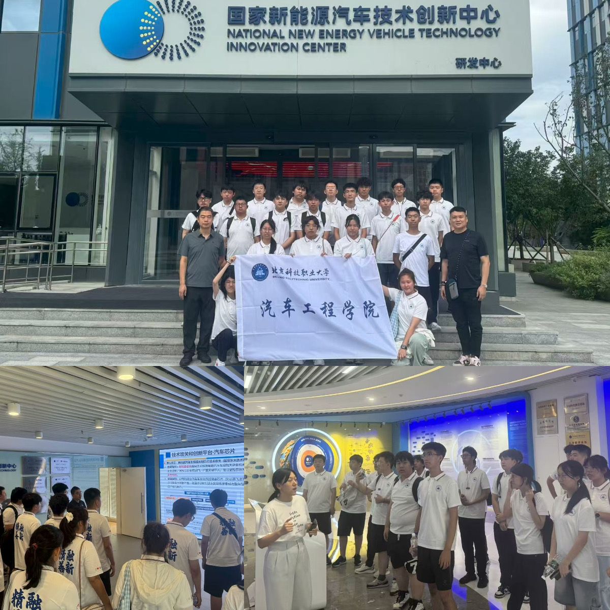 在国家新能源汽车技术创新中心,同学们参观了新能源汽车动力系统实验室、智能驾驶测试区、电池安全研发中心。从高效能电机的运转原理,到动力电池的能量密度突破,再到整车控制系统的智能算法演示,每一项技术细节都展现了我国在新能源汽车核心技术领域的自主创新成果。