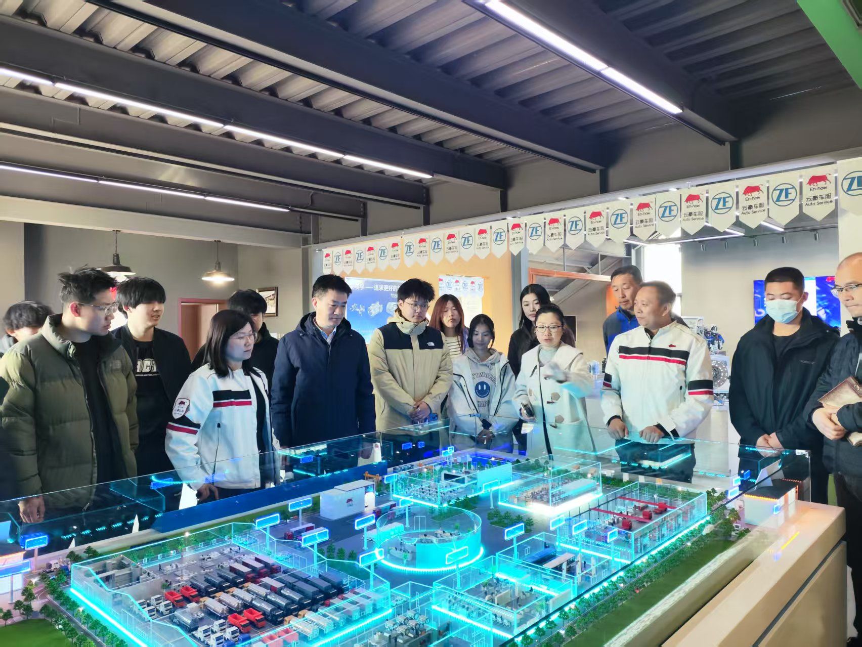吕洪波向师生介绍了云豪集团的发展历程和核心业务,带领大家参观了商用车客服中心、维修车间、换电站、汽车研究院、配件库、新媒体运营中心、仓储配件库、员工生活区等,细致回答大家关心的问题。双方在产教融合、人才培养、实习与就业等方面深入交流,达成共识。