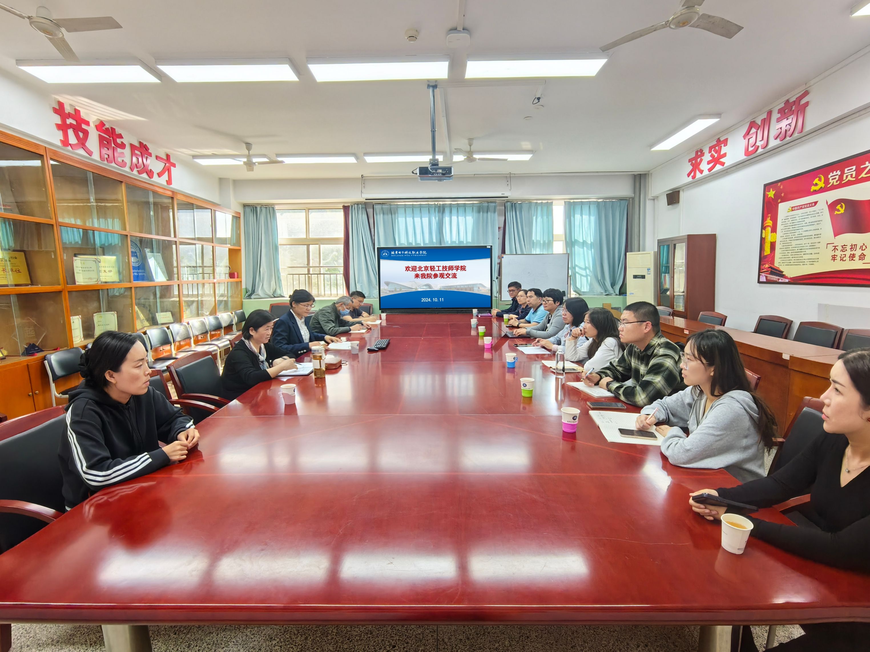 10月11日,北京轻工技师学院李莉一行受邀到汽车工程学院参观,轨道交通技术系全体老师参加。