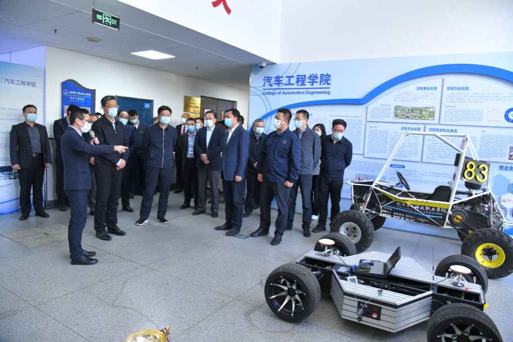 怀进鹏一行深入汽车工程学院,听取相关专业情况介绍,观摩成果与技术展示,了解学校在人才培养、产教融合、校企合作、服务首都和经开区产业发展方面的探索实践,对学校精准对接北京市高精尖产业体系,不断优化专业与产业匹配度,着力提升专业服务产业能力所取得的成效给予了充分认可和肯定。