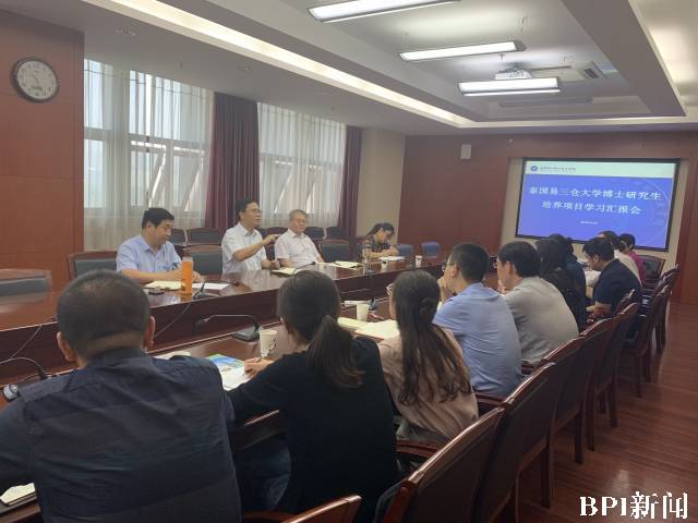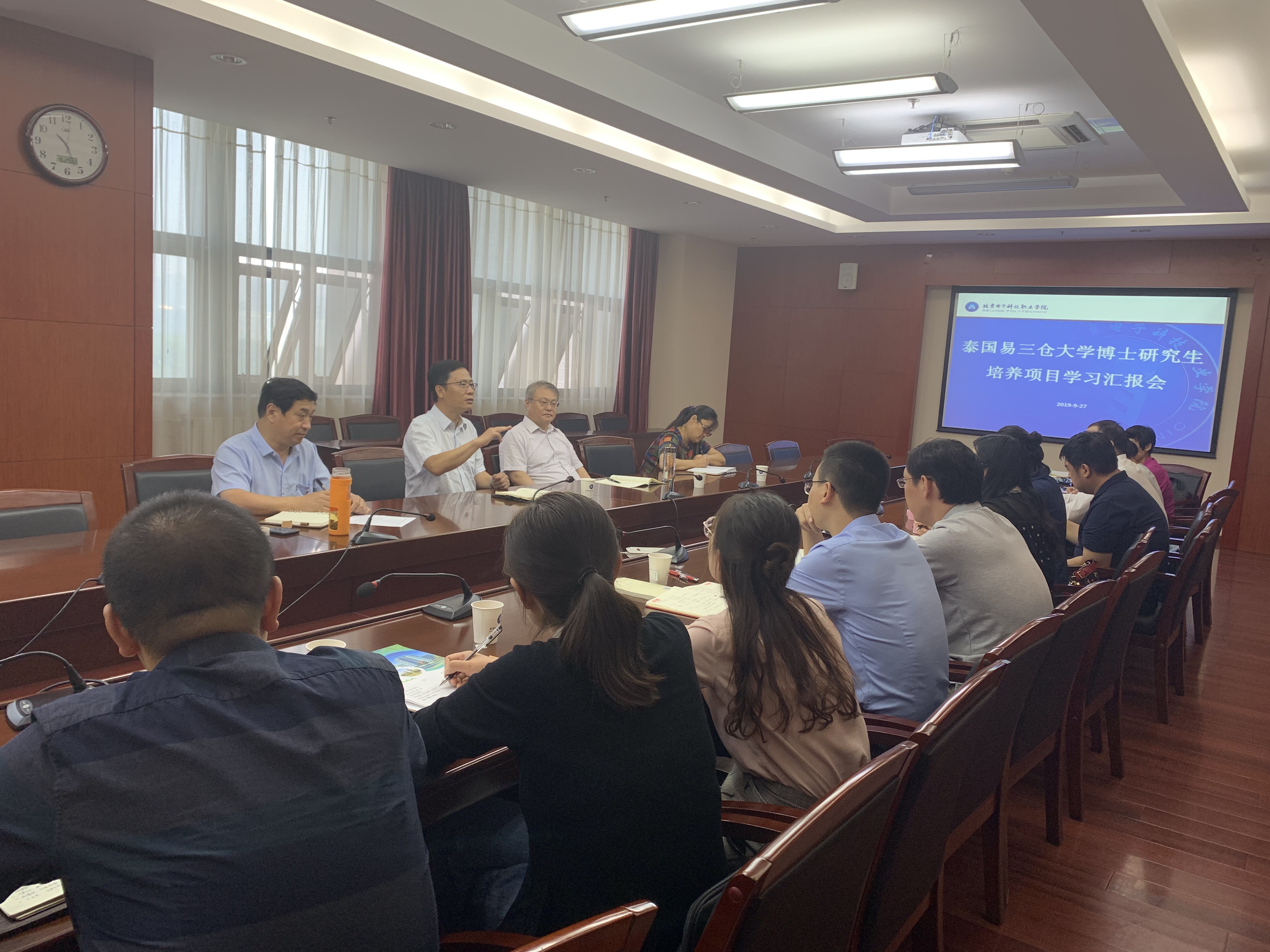 7月27日上午,学校人事处组织泰国易三仓大学博士研究生培养项目学习汇报会,学校党委书记楚国清、院长孙善学、人事处有关负责人参加此次汇报会。