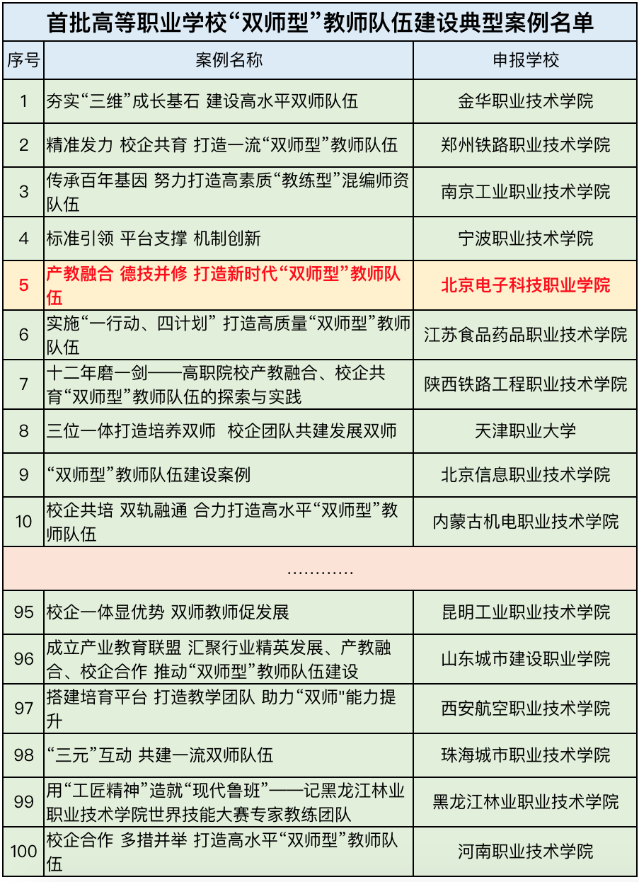 近日,教育部公布了首批全国职业院校“双师型”教师队伍建设典型案例名单。BEAT365《产教融合 德技并修 打造新时代“双师型”教师队伍》案例成功入选。