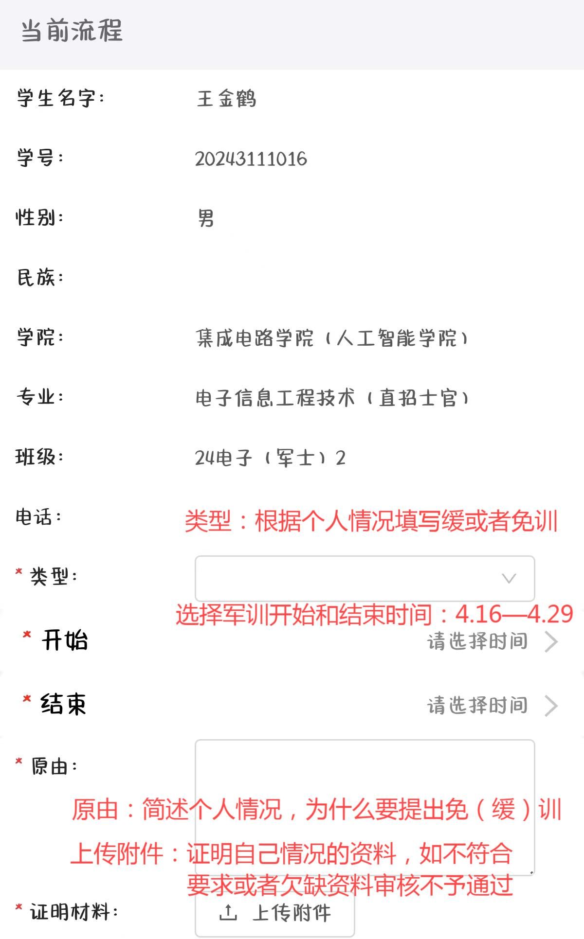 3.校医务室签署意见,可以根据提供的材料判断该学生应是缓训还是免训,最终以校医审核为准。如材料不符合要求,学生本人关注审核状态,修正后再提交。
