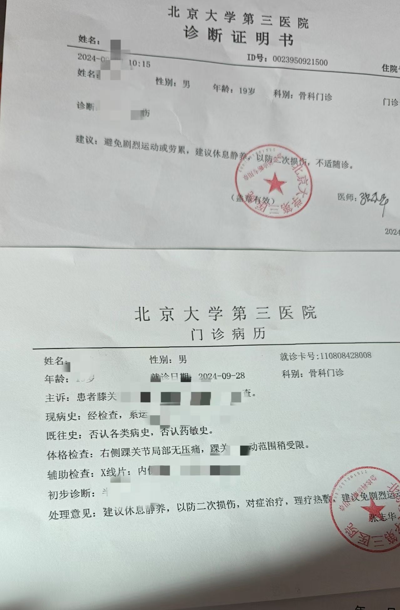 如因身体原因不能正常参加本次军训,须持公立二级及以上医院近期出具的诊断证明(附门诊病历)(共提交两样材料如下图),申请缓(免)训,经学校批准后,可不参加本次军训,但须服从学校的其他相关安排。