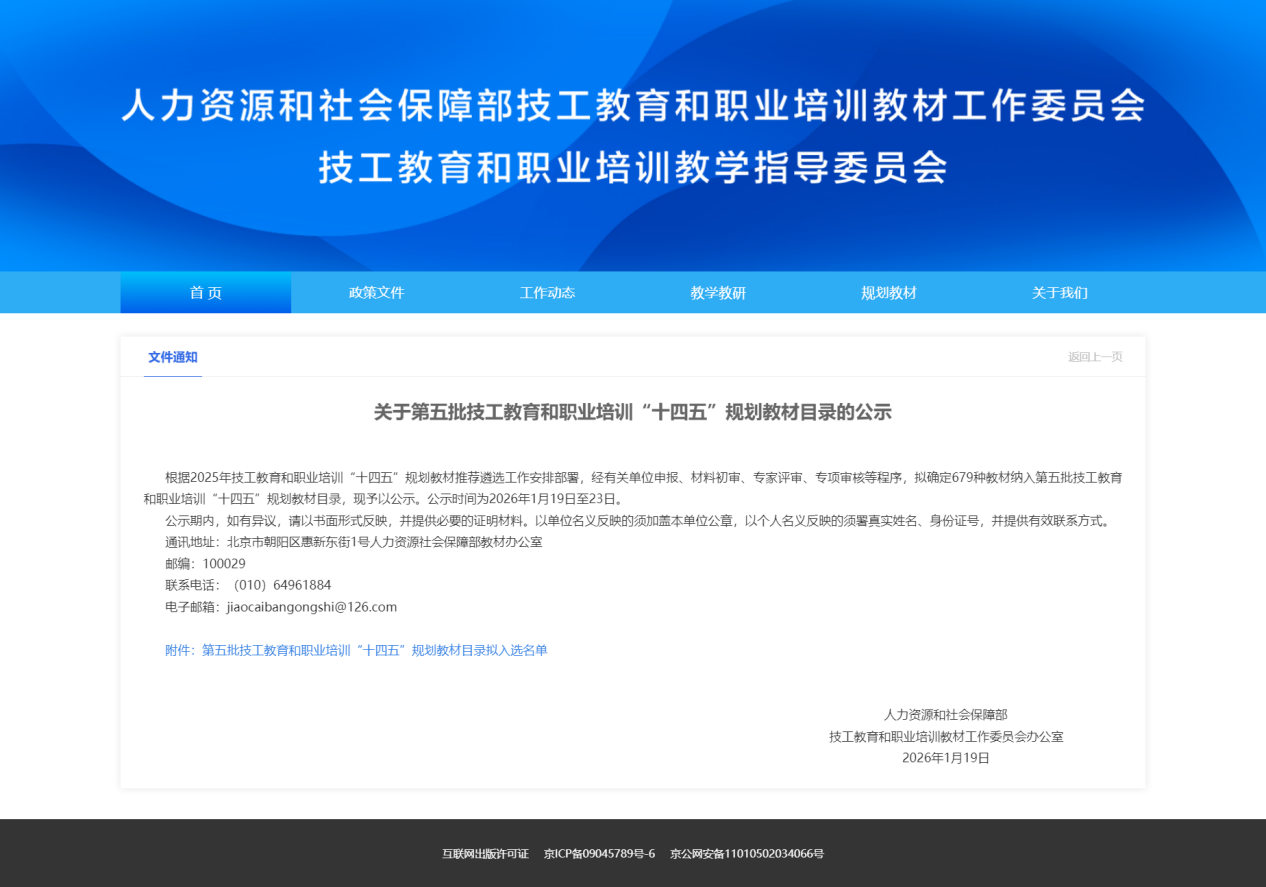 近日,人力资源和社会保障部技工教育和职业培训教学指导委员会公布了第五批技工教育“十四五...【详细信息】