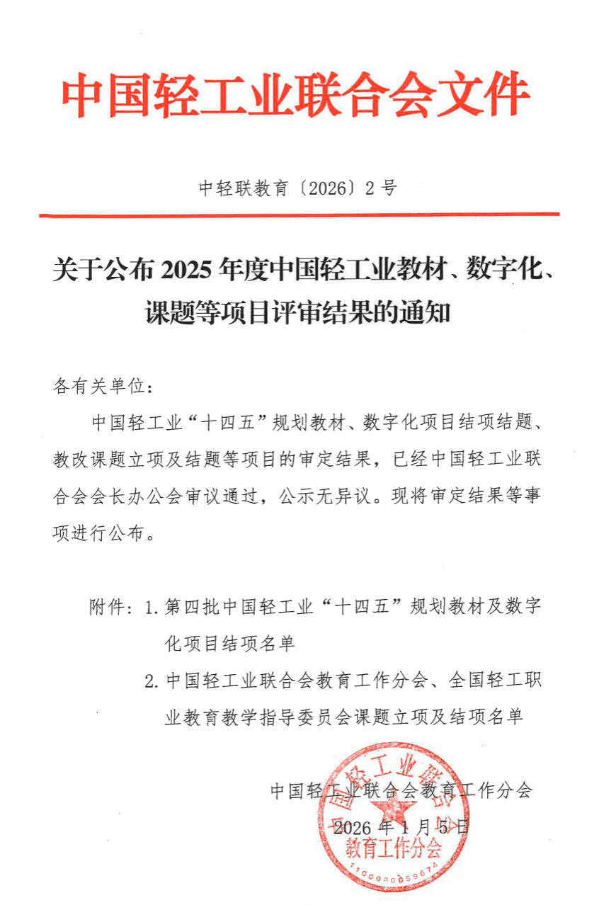 近日,中国轻工业联合会发布《关于公布2025年度中国轻工业教材、数字化、课题等项目评审结果...【详细信息】