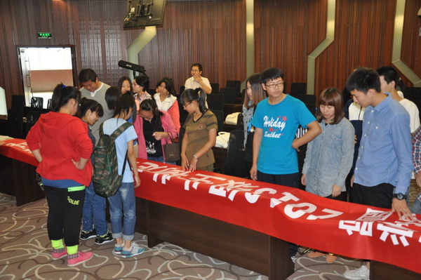 最后,全体参加开班仪式的老师和专家与“定单班”的28名同学合影留念,并提议让28名学生在“开班仪式”的横幅上签上了自己的名字。