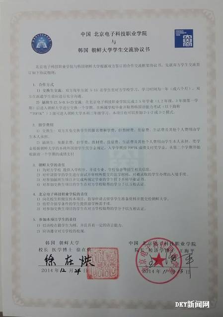 2015年2月26日12生物技术1班 6名同学,赴韩国朝鲜大学,开始了他们5个月的交换学生学习,主要攻读韩国语课,附加一门专业课。目前其中4名同学决定留在朝鲜大学完成他们的本科过程以及研究生过程。