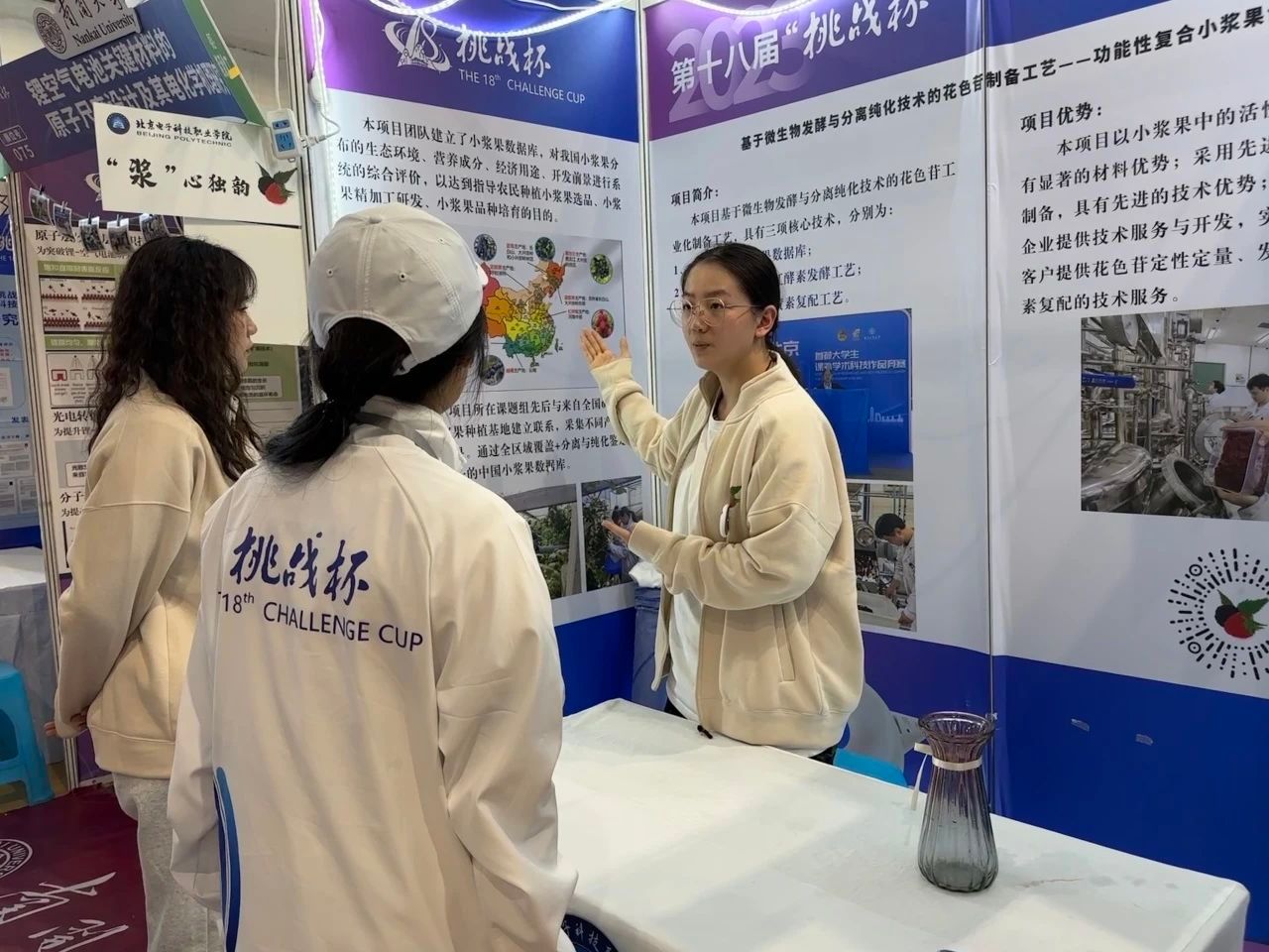 2023年10月27日至31日,第十八届“挑战杯”全国大学生课外学术科技作品竞赛终审决赛在贵州大学举行。BEAT365生物工程学院“基于微生物发酵与分离纯化技术的花色苷制备工艺——功能性复合小浆果创新工场”项目获得主赛道全国一等奖,这是BEAT365首次在挑战杯大学生课外学术科技作品竞赛(“大挑”)全国决赛中获得一等奖。