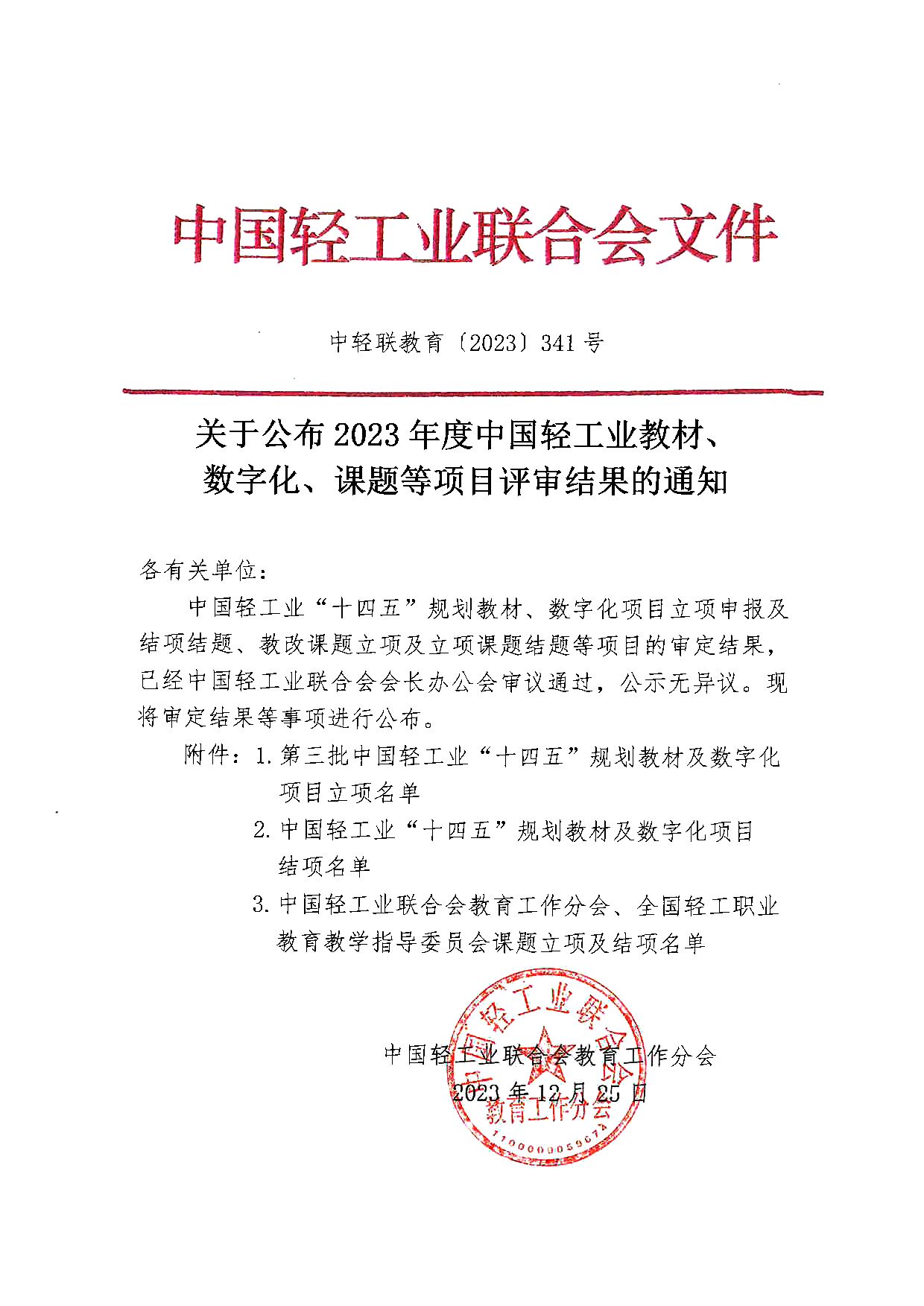 中国轻工业"十四五"规划教材和课题等项目申报及评审工作于 2023年5月启动,经中国轻工业联合会组织专家评审,共有232本教材和181个课题获得立项。该成果对于深入推动生物工程学院教材建设和教学改革工作发展,提高人才培养质量具有重大意义。