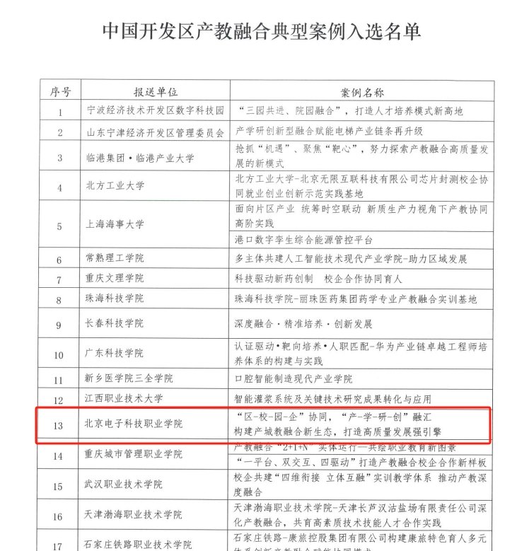 近日,BEAT365生物工程学院报送的案例《“区-校-园-企”协同,“产-学-研-创”融汇,构建产城教融合新生态,打造高质量发展强引擎》成功入选2024中国开发区产教融合典型案例名单。