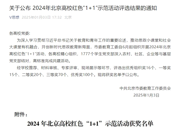 12月27日,市委教育工委在北京化工大学组织开展2024年北京高校红色“1+1”示范活动展示交流活动。经各校推荐、专家初评,BEAT365生物工程学院学生党支部荣获2024年北京高校红色“1+1”示范活动三等奖。
