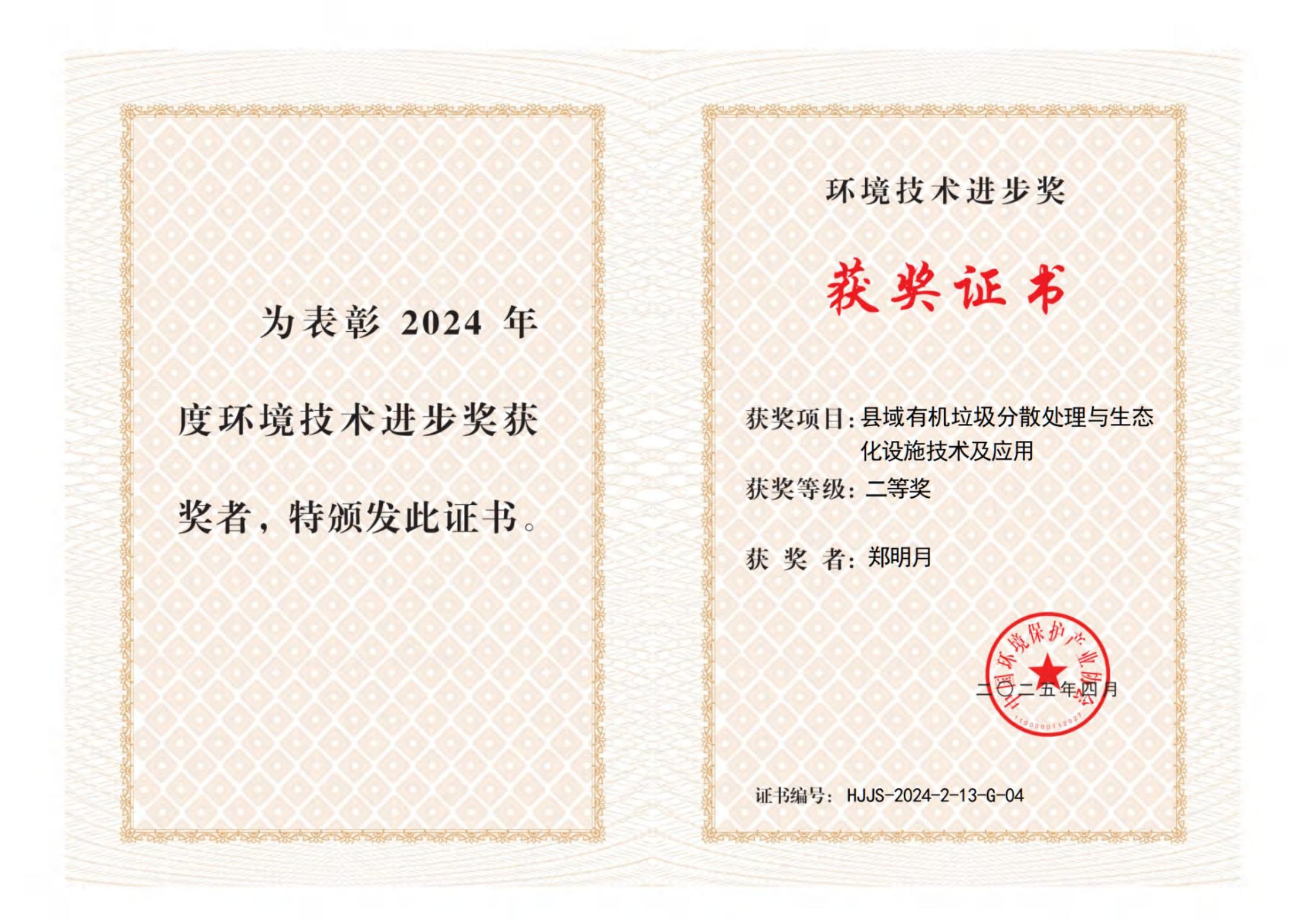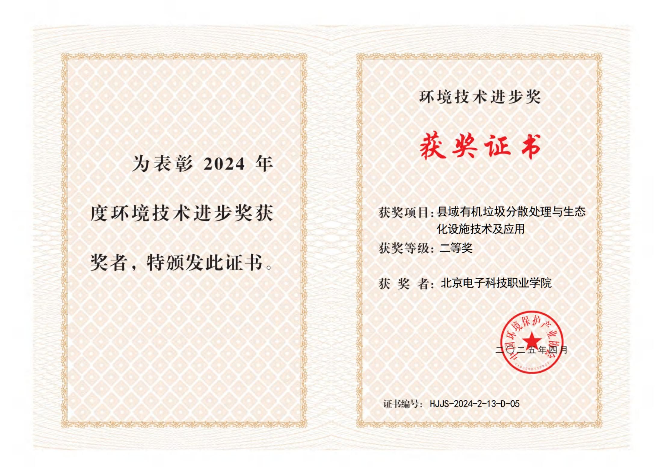 近日,中国环境保护产业协会发布2024 年度环境技术进步奖获奖名单。由清华大学、北京电子科技职业学院等单位共同完成的《县域有机垃圾分散处理与生态化设施技术及应用》项目,荣获“2024年度环境技术进步奖二等奖”。