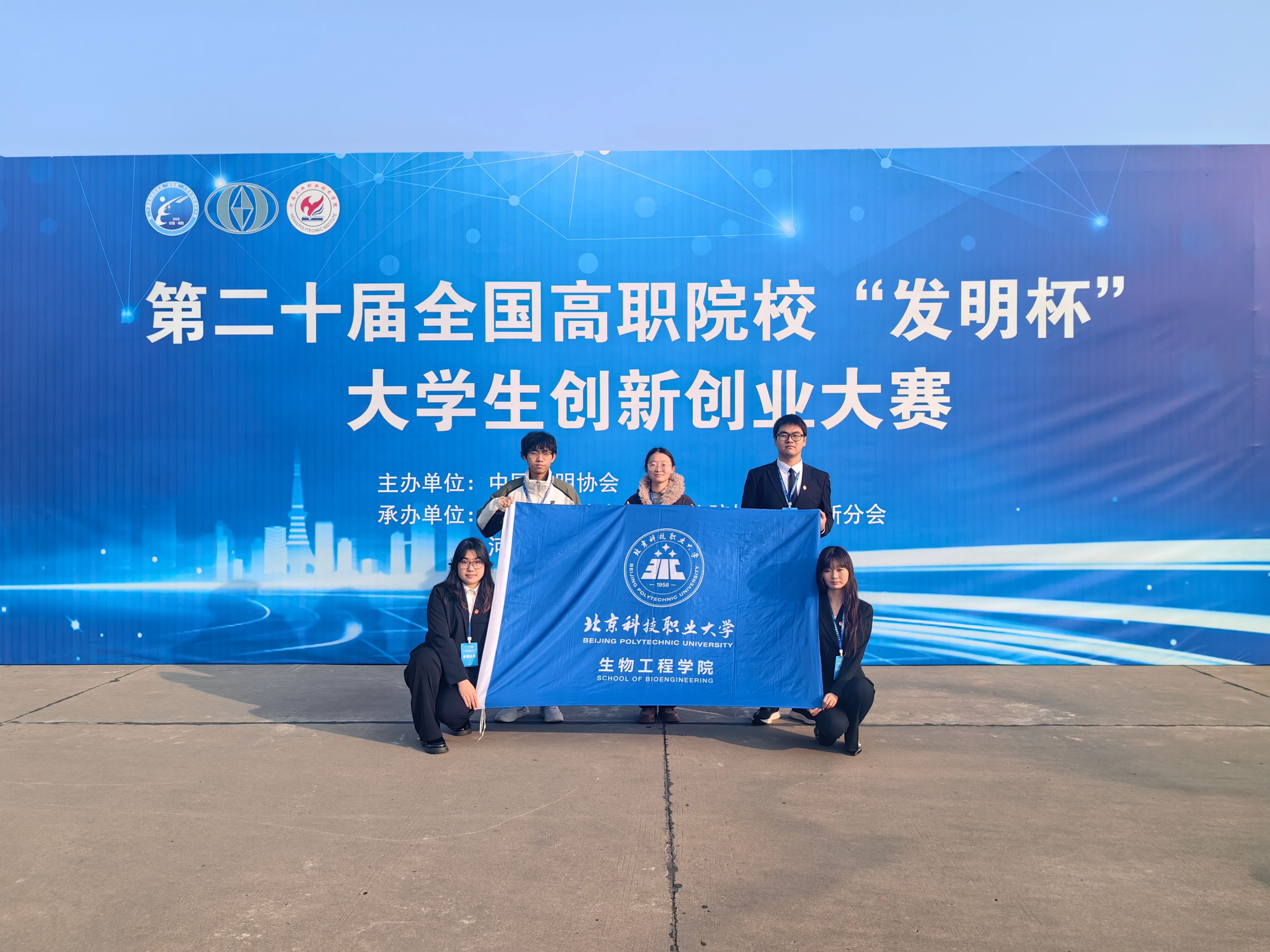 2025年12月26至28日,第二十届全国高职院校“发明杯”大学生创新创业大赛决赛在河南工业职业技术学院举行。大赛共吸引来自全国的158所院校参赛,提报作品近4万项。经评审,来自全国各地高职院校的448支项目入围决赛。经激烈角逐,生物工程学院参赛师生荣获佳绩。《小“芯”肝——肝癌标志物miRNA早诊技术》和《玉容臻·中医药智能美白修复面膜》项目分别获发明制作类赛道一等奖、二等奖;《老龄食—老年健康零食新体验》获创业实践类三等奖。