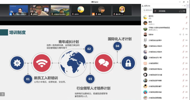 20食检班和20食安班共71名学生参加了线上宣讲会。会上食品技术系主任于海龙首先向学生介绍了创新型人才培养的具体内容和下学期工作的具体安排。随后,中轻检测认证有限公司、北京康比特体育科技股份有限公司、SGS-通标标准技术服务有限公司和麦当劳(中国)有限公司四家企业的企业代表或人力资源主管分别对企业发展历程、主营业务、企业文化、招聘岗位需求、发展空间和待遇有了详细的介绍。企业宣讲后,同学们纷纷向心仪的企业投递了简历,用人单位将安排在近期进行面试。