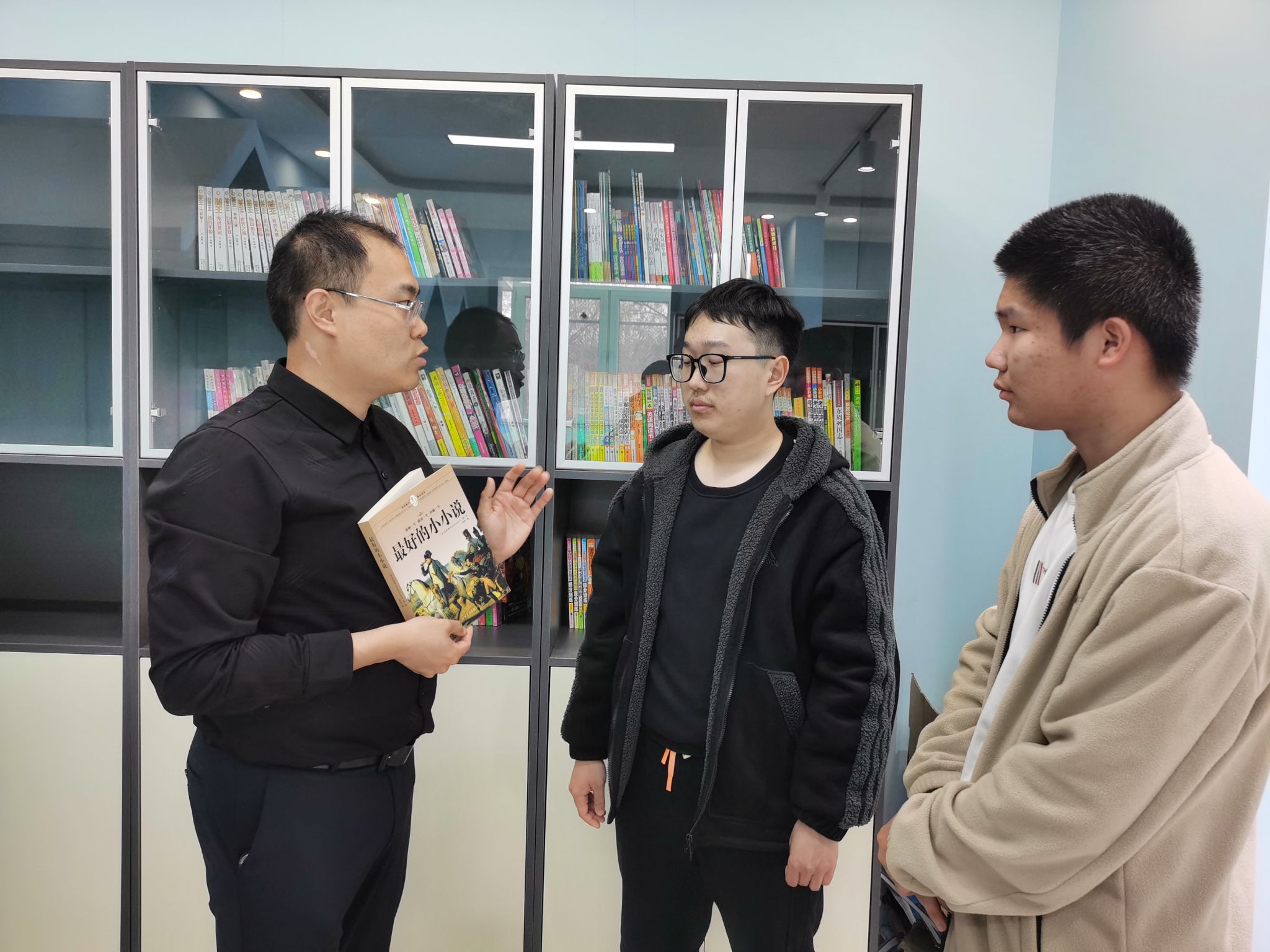 活动中,刘青山书记为高源学长颁发了聘书,高源学长向生物工程学院捐赠了科普图书。活动结束后,高源学长走进生物工程学院在宿舍党团工作站打造的图书角进行了参观,同时现场指导生物工程学院阅读社成员如何对图书进行分门别类,对接下来如何更好地发挥图书角的作用提出了建议。最后,在刘青山老师的陪同下,高源学长参观了校史馆。