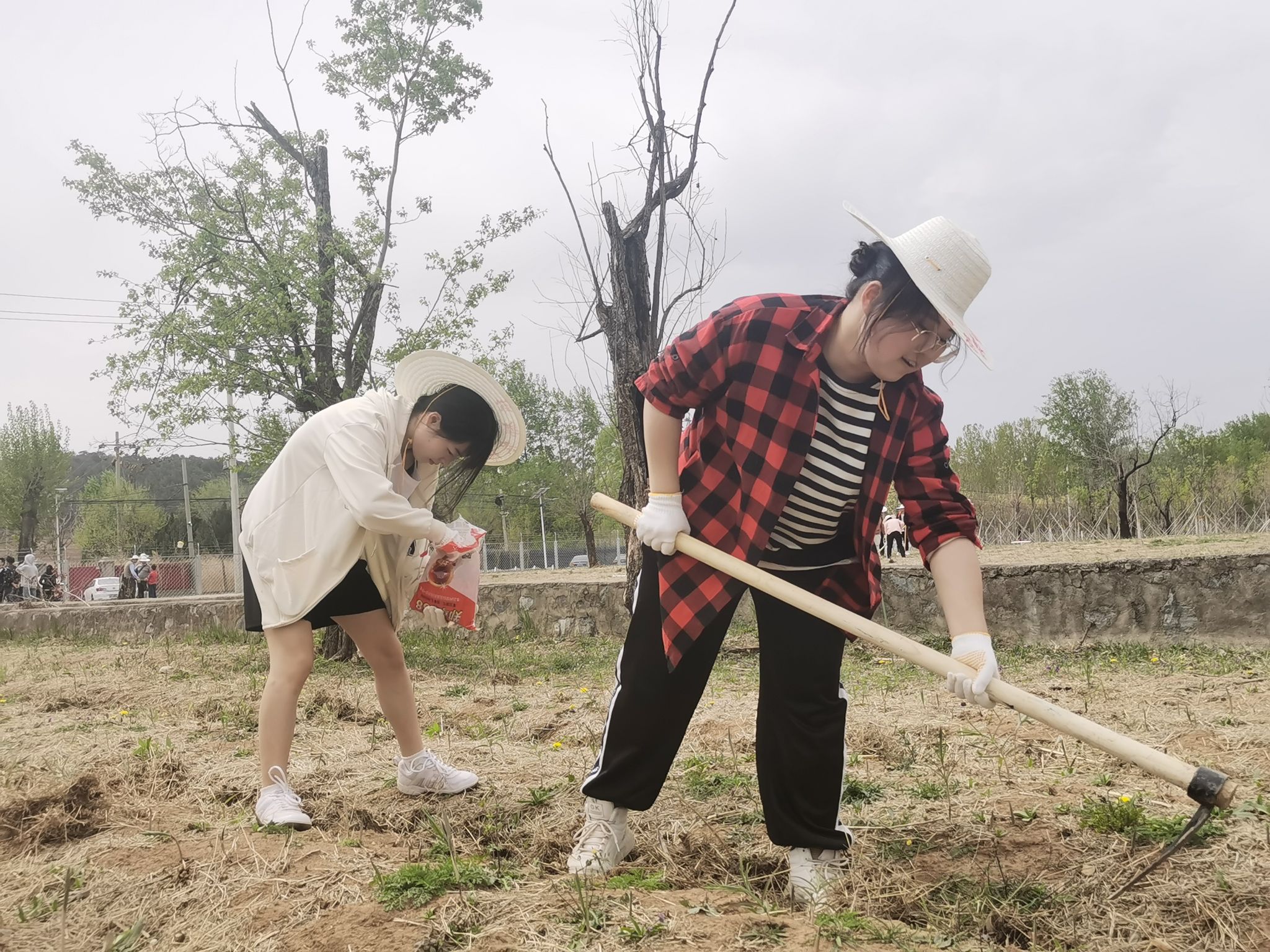 永陵村、德陵村、北新村支部书记作为指导教师,为同学们讲解了如何在播种前选择种子既可以增加种子的出苗率,又能有效控制病虫害。同学们3到4人为一组,锄地、撒种、埋土,各司其职,分工合作,在春耕泥土上脚踏实地,在劳动躬耕中求学求知。