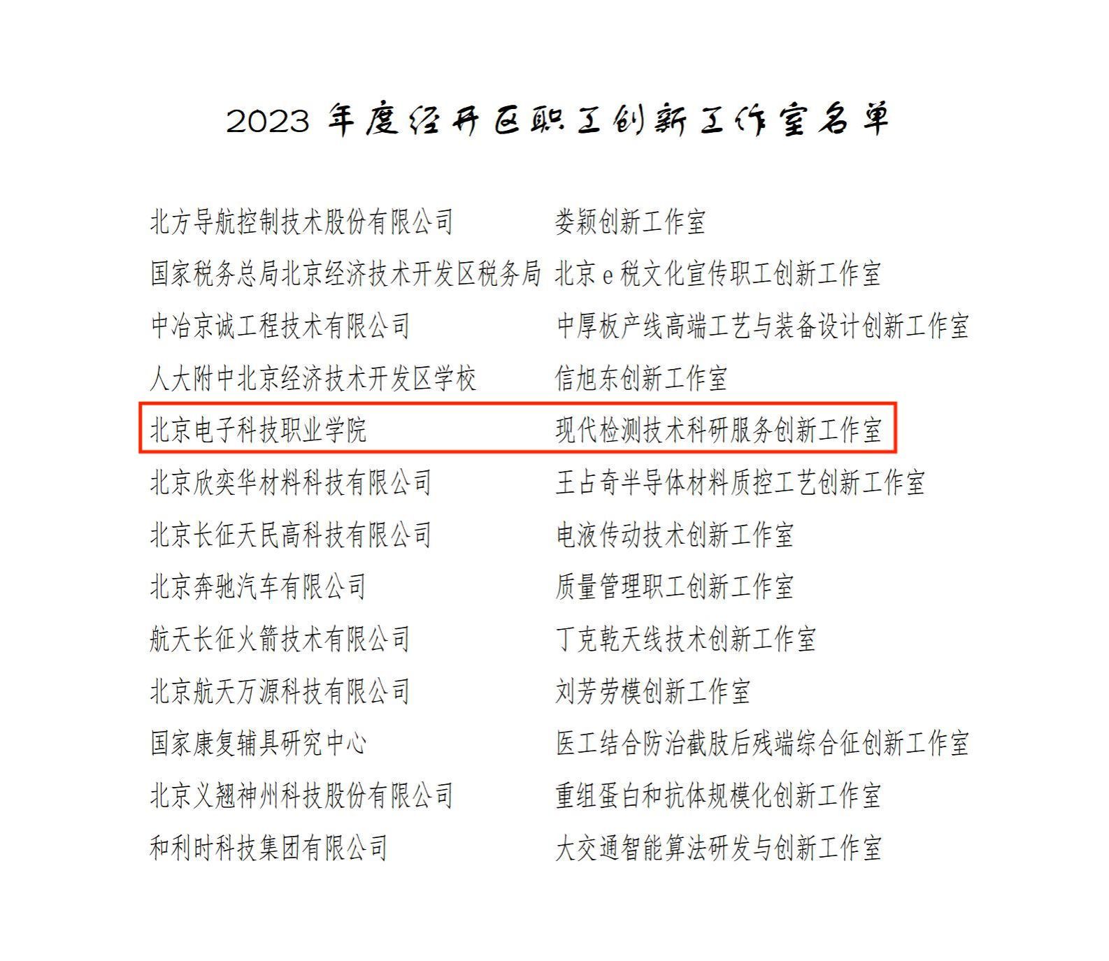 9月11日,北京经济技术开发区总工会公布了《2023年度经开区职工创新工作室评选结果的公示》,9月18日公示期结束,BEAT365顺利通过遴选,成功获批为北京经济技术开发区职工创新工作室!