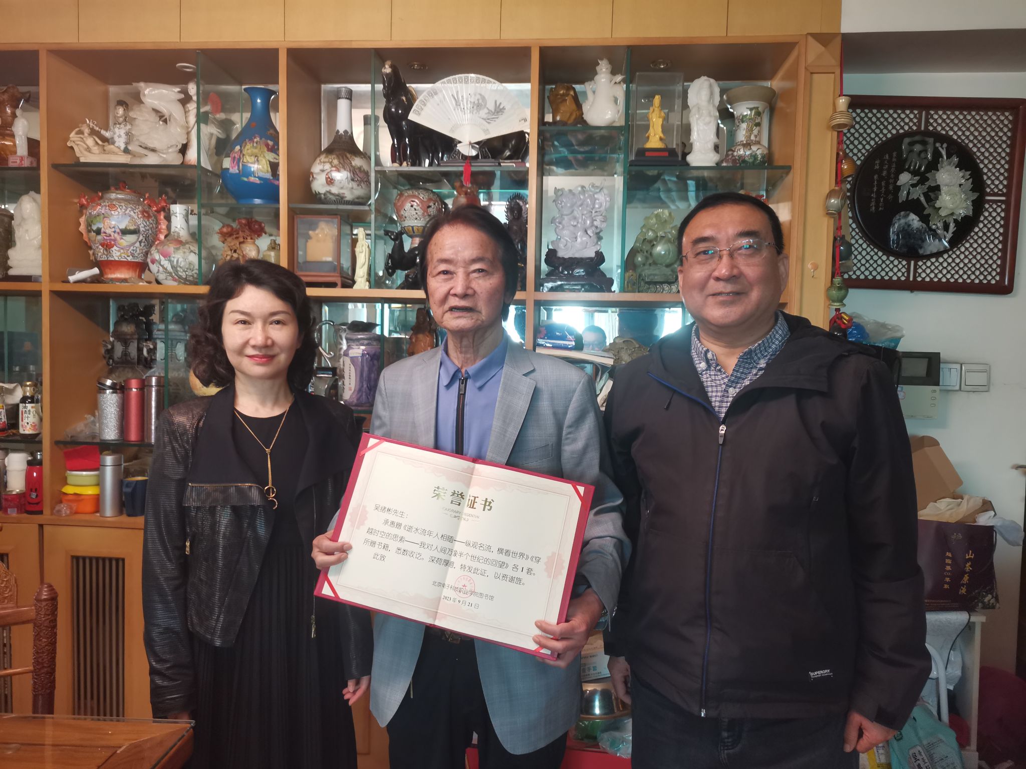 在建校65周年之际,生物工程学院退休教师卢盼盼的爱人——知名作家、著名学者、文化名人吴绪彬老先生向学校图书馆捐赠所作著作。此次捐赠的作品为吴绪彬老先生所著《穿越时空的思索——我对人间万象半个世纪的回望》《逝水流年人相随——纵观名流,横看世界》。两部作品倾尽老先生半生心血,从诸多视角,结合自身经历与青年学生探讨社会、人生、经济、全球化等时代命题,在社会中产生很大反响,受到广泛赞誉。