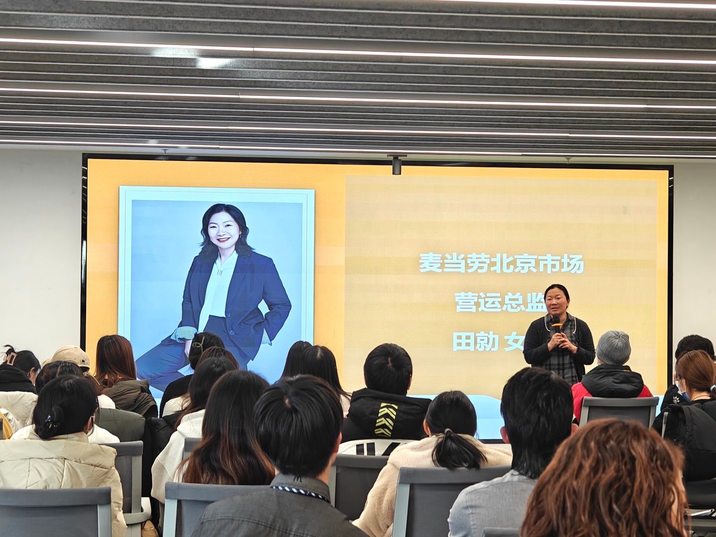 麦当劳公司田勍女士和王蕾女士分别介绍了北京麦当劳公司的基本运营情况、人员招募和培养政策,对同学们来到麦当劳公司参加本次实训课程表示热烈欢迎,希望大家通过这六周的实训都能实现个人能力的提升。