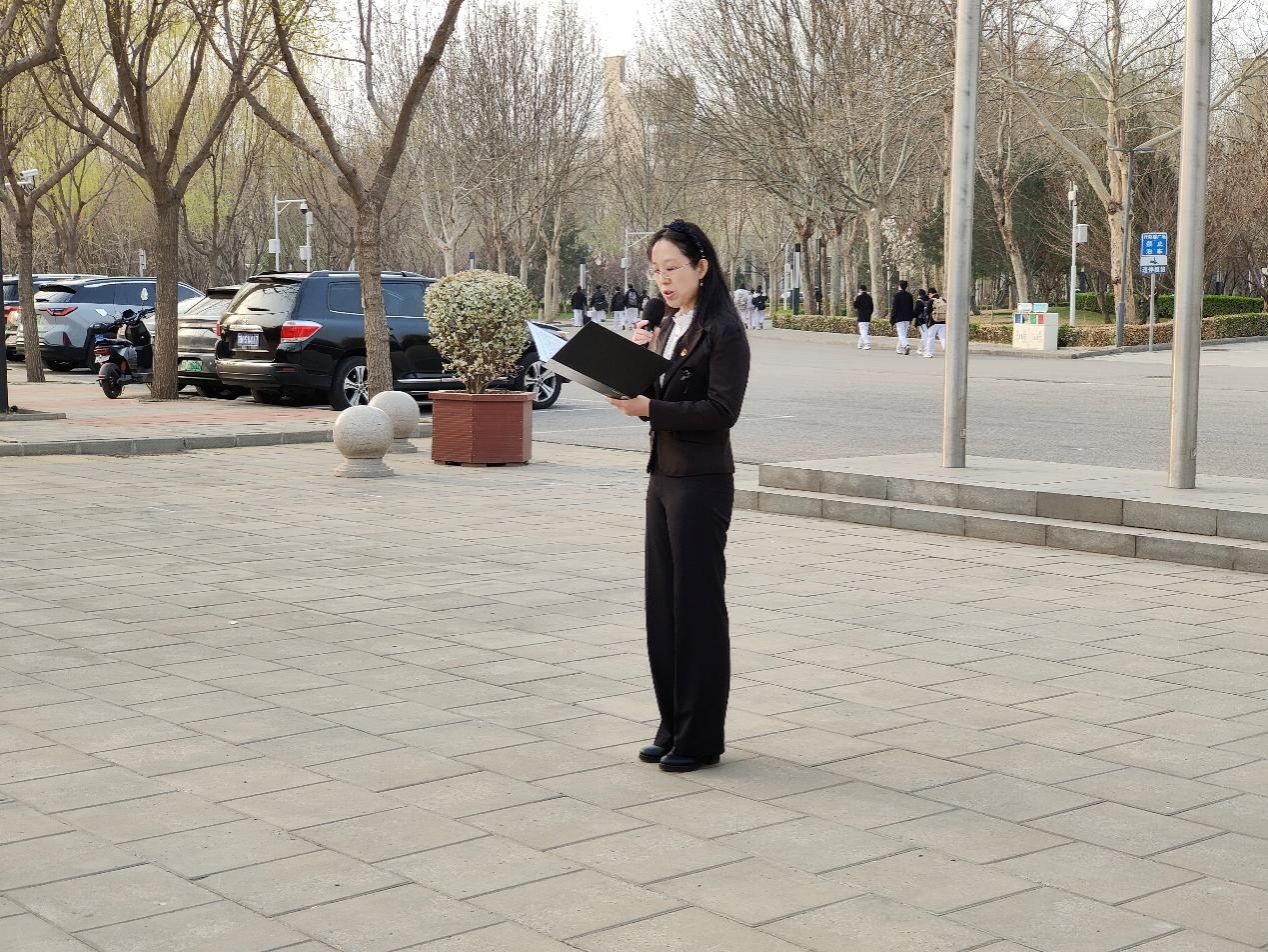郭翠霞老师讲授国旗下的思政课,她表示即将到来的清明节是我国传统节日,是连接传统文化与现代文明的桥梁,是增加家族凝聚力和民族认同感的庄重时节,同时也承载着我们对英雄先烈的追思。“一寸山河一寸血,一抔热土一抔魂”,纪念英烈最好的方式就是传承英雄精神,从中汲取奋斗力量,希望同学们在这个清明节共同缅怀先辈、追思历史、坚定文化自信,勇担历史使命,为实现中华民族伟大复兴提供有力的人才和技能支撑。