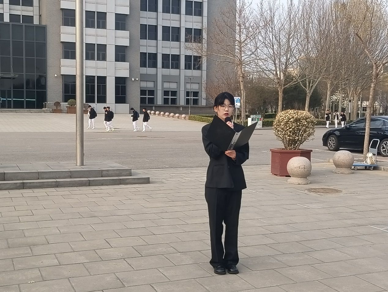 23级食品安全班何嘉怡作国旗下演讲,她呼吁大家缅怀革命先烈,苦练技能报国,深入学习革命先烈们的崇高精神,将其内化于心、外化于行。我们要努力学习专业知识,不断磨炼专业技能,提高自己的综合素质,为国家的繁荣富强贡献自己的力量。
