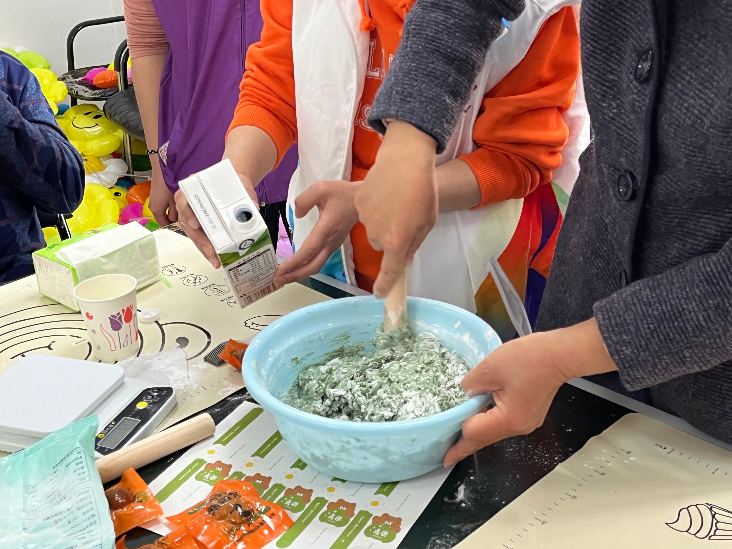 活动伊始,食品专业学生肖增鑫首先向残疾人朋友介绍了清明节的由来和青团的制作工艺和寓意,并详细介绍了青团的原料选择、制作过程以及背后的故事,让残疾人朋友们对这道传统美食有了更加全面的认识。随后,在学生党员和入党积极分子的指导下,残疾人朋友们纷纷动手尝试制作青团。大家围坐在一起,揉面、包馅、搓圆,忙得不亦乐乎。不一会儿,一盘盘青翠欲滴的青团便呈现在大家面前。品尝着自己亲手制作的青团,残疾人朋友们脸上洋溢着幸福的笑容。活动过程中,学生党员和入党积极分子与残疾人朋友们进行了亲切交流,倾听他们的心声与需求。残疾人朋友们也分享了自己的生活经历与感悟,让学生党员和入党积极分子对残疾人的坚韧与乐观有了更深刻的理解。