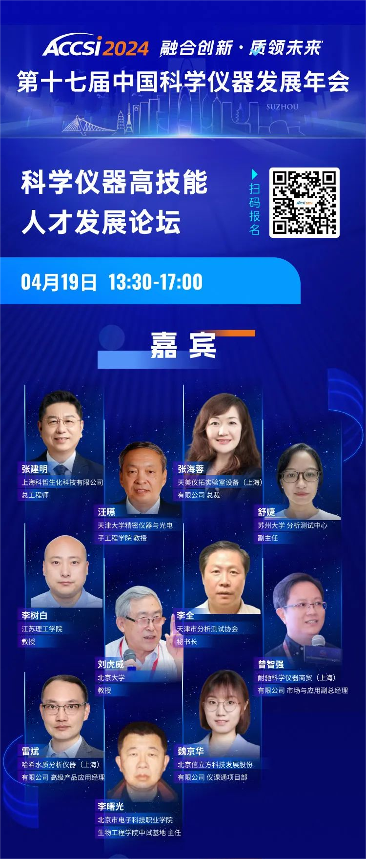 2024年4月17-19日,第十七届中国科学仪器发展年会(ACCSI2024)在苏州狮山国际会议中心盛大开幕。4月19日,生物工程学院李曙光作为特邀嘉宾参与科学仪器高技能人才发展分论坛。