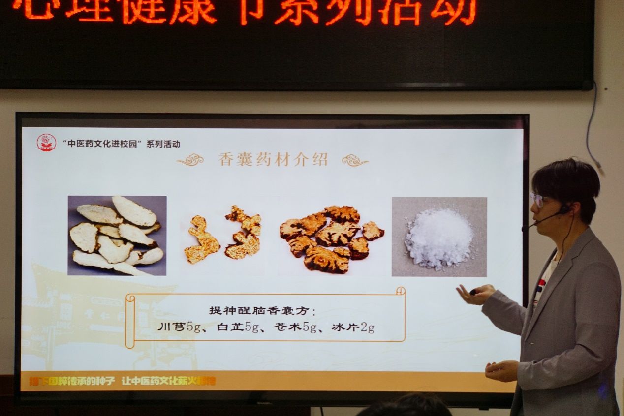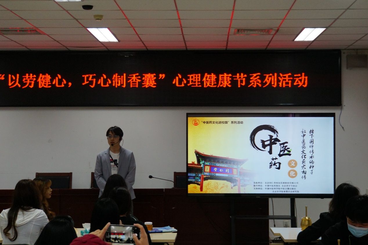 活动现场,来自北京同仁堂的老师首先向同学们介绍了中药香囊的起源、发展以及其在中医药领域中的重要作用,他指出中药香囊不仅具有驱虫避邪、提神醒脑的功效,还蕴含了丰富的中医药文化。学生们听得津津有味,对中药香囊的制作充满了好奇和期待。