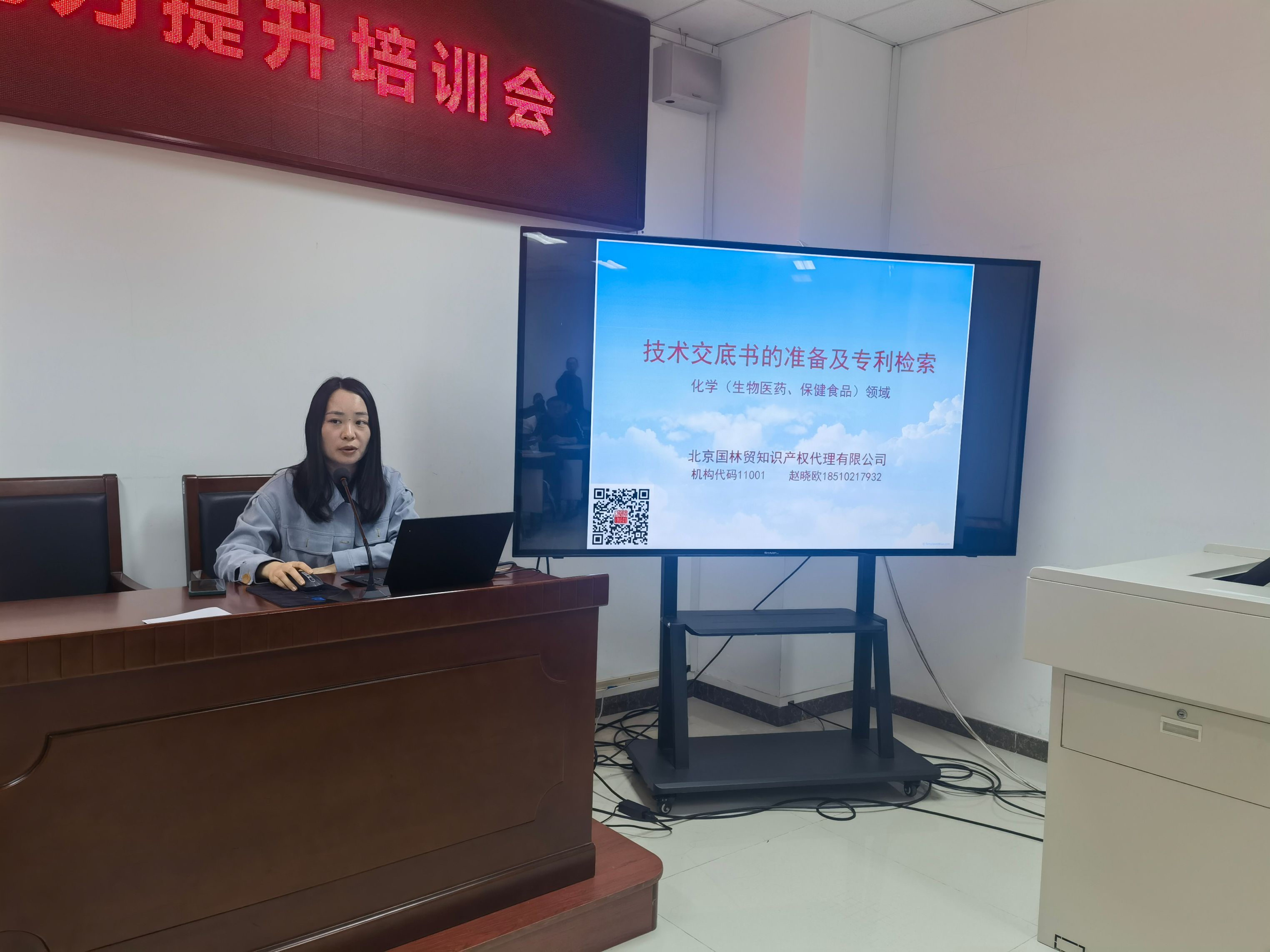 最后,来自北京国林贸知识产权代理有限公司专利代理师赵晓欧女士就生物和化学领域的专利挖掘和技术交底书的准备进行了专业讲解。她通过实际案例分析,指导教师们如何进行专利查新检索、专利挖掘和申报材料准备,为教师们的科研工作提供了有力的支持。