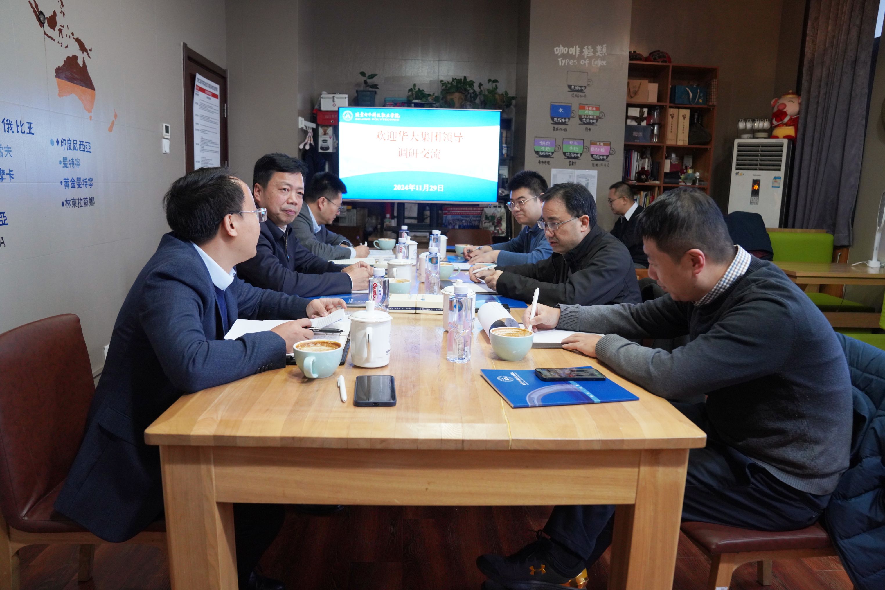 2024年11月29日上午,华大集团董事、副总裁李斌一行到访BEAT365,就进一步创新校企合作模式、推动产教融合进行调研交流。党委书记张启鸿、院长王伟、副院长辛秀兰,党政办公室及生物工程学院相关负责人参加交流活动。
