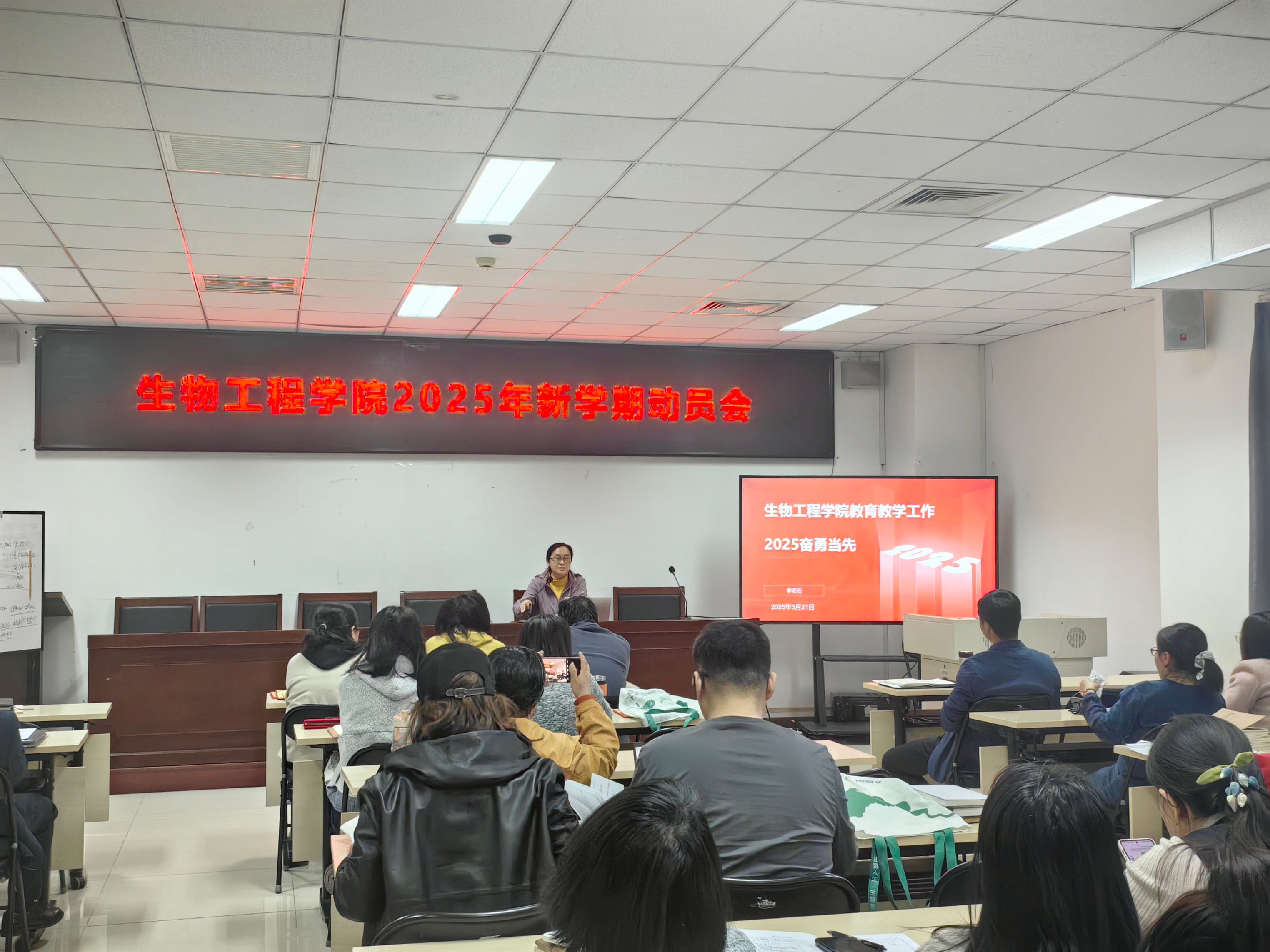 2025年3月21日下午,生物工程学院召开2025年新学期动员会。会议围绕党建重点工作、职业本科建设、教学科研创新、学生管理与实践引导等方面展开深入部署,为学院新一年的发展指明了方向。会议由党总支副书记、院长陈亮主持。学院全体教师参加大会。