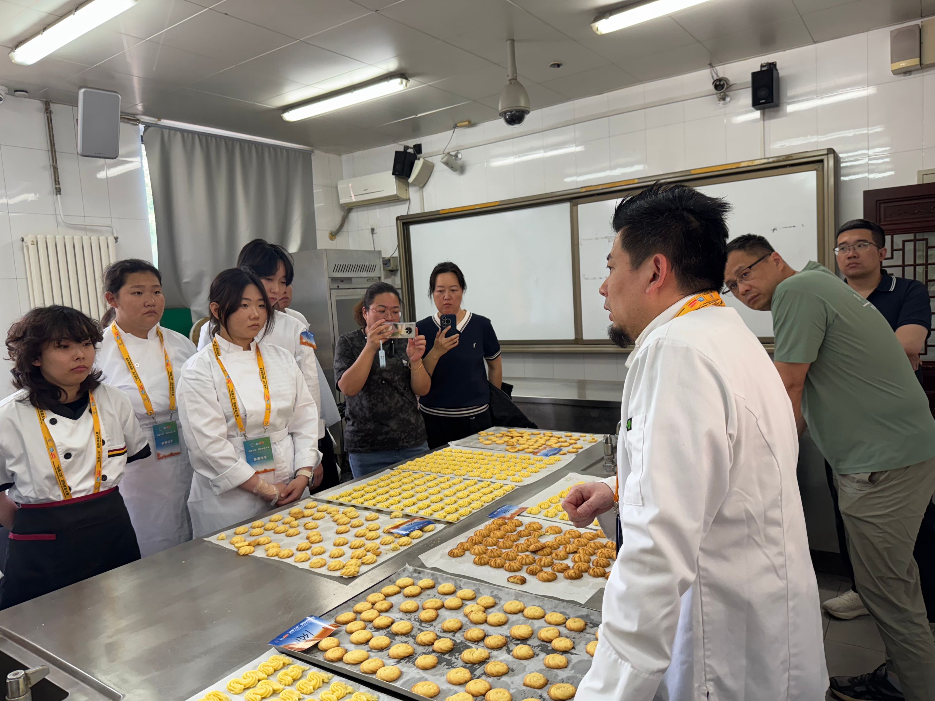 西餐西式面点项目的选手着重练习了曲奇裱花和烤制。通过反复实操,选手们调整裱花袋握力与挤出角度,控制力度使挤出的圆形曲奇大小、间距一致,同时适应不同面糊状态,保证纹路清晰、造型规整。在烘烤时,选手们观察曲奇膨胀、上色过程,积累判断烘烤程度的经验,不断调试油脂打发程度与烘烤参数,准掌握火候,确保曲奇外脆内酥、色泽均匀。