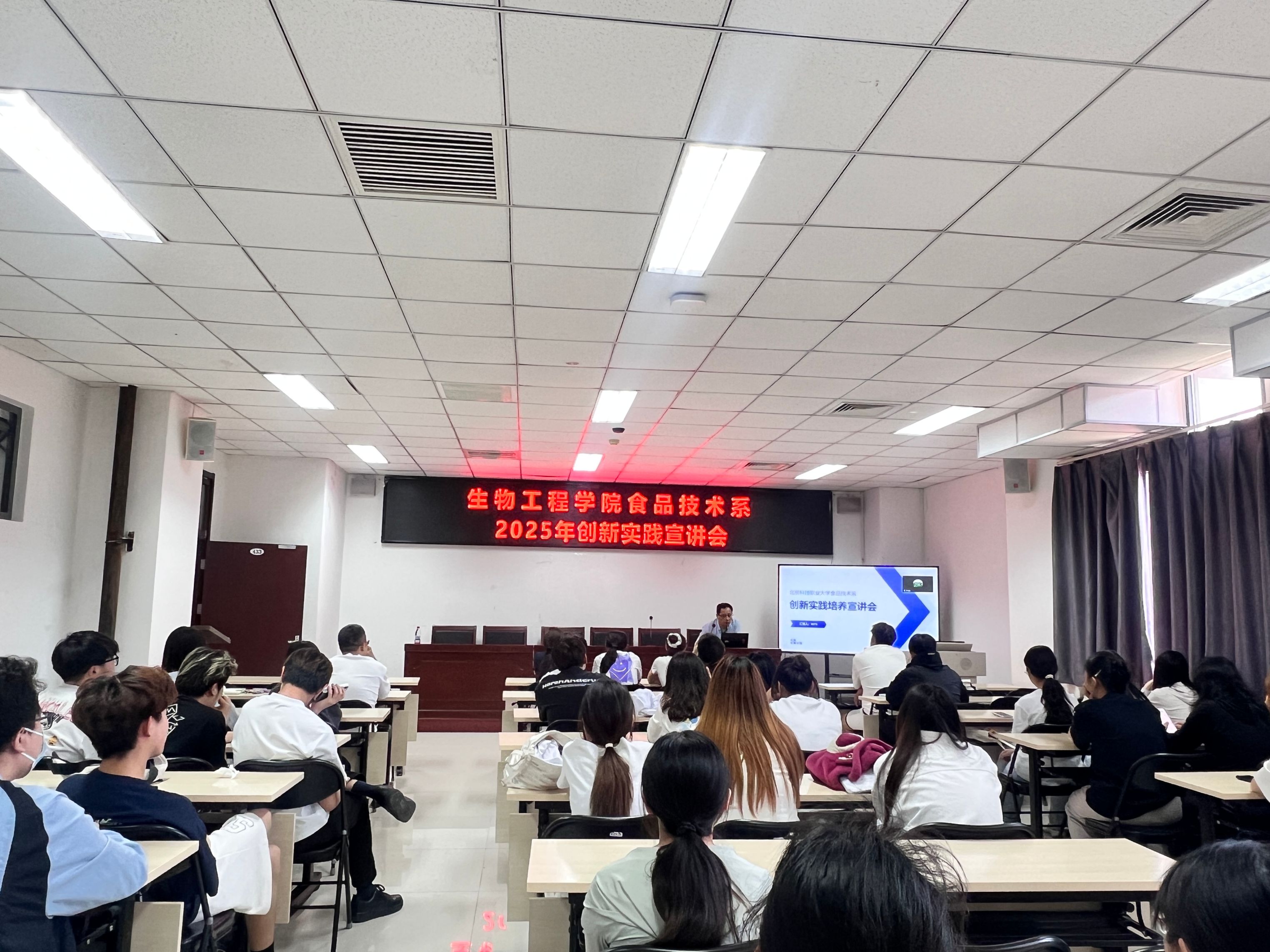 6月10日,食品技术系在生物楼433会议室召开了创新实践培养宣讲会,本次活动旨在让学生深入了解创新实践培养项目的流程和相关企业情况,明确实践方向。2026级毕业班相关学生和班主任参加。