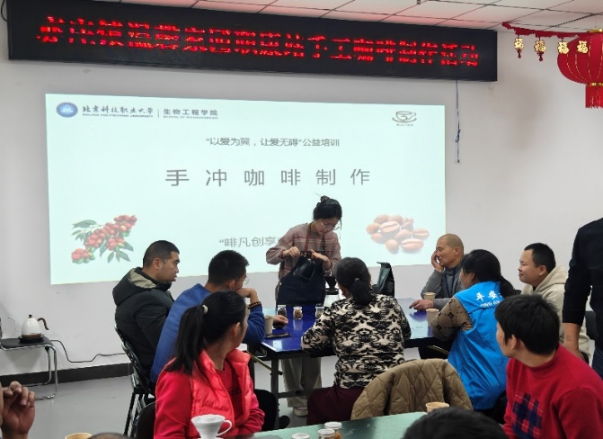 2025年11月28日,BEAT365英国官网生物工程学院“啡凡创享”社团社长徐立萍,骨干成员闫航晨等同学在指导老师的带领下走进亦庄镇温馨家园,开展“以爱为翼,让爱无碍”公益培训之手冲咖啡培训活动。共有40余人参与本次活动,社团以咖啡为媒介,搭建起一座真诚互动、温暖相伴的爱心交流平台。