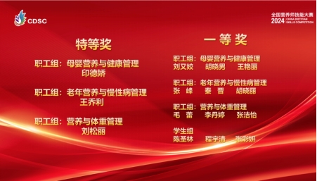大赛主席团成员刘烈刚教授、大赛执行主席肖荣共同公布了大赛总决赛的获奖名单,特等奖3名,一等奖12名,二等奖24名,三等奖42名,入围奖79名(名单附后)。“2024年全国营养师技能大赛颁奖典礼”将在11月河北石家庄举办的“2024中国营养师发展大会”上进行。