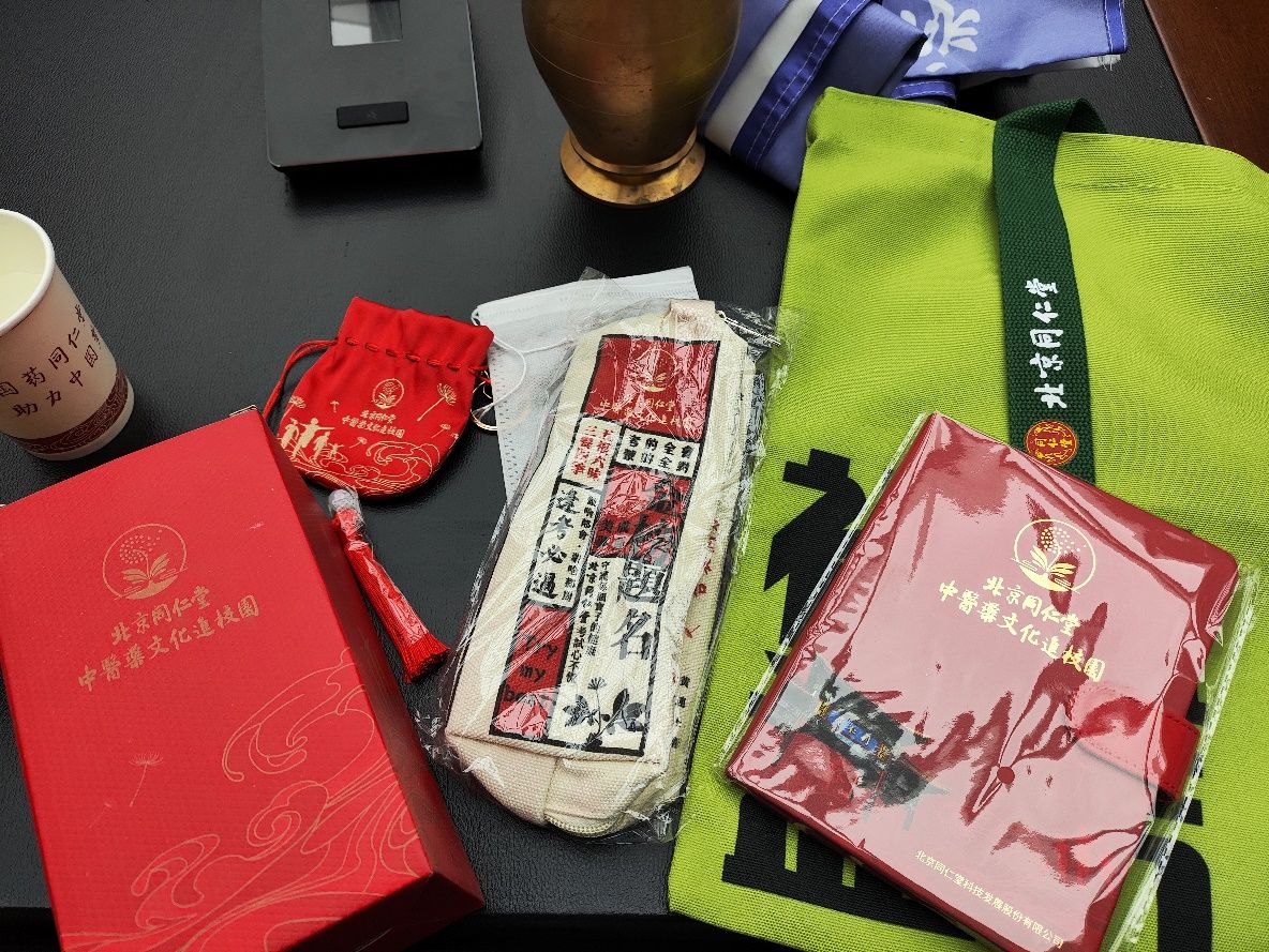 同仁堂还为团队成员赠送了特色礼品。礼物虽小,却饱含着对新时代大学生的鼓励和对中医药文化传承的期望,激励团队成员在未来的学习和生活中继续探索和学习。
