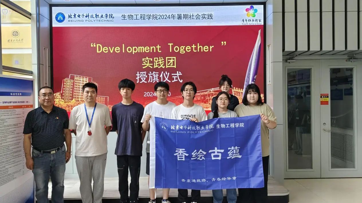 7月10日上午,生物工程学院为实践团举行了授旗仪式,并欢送实践团出征。