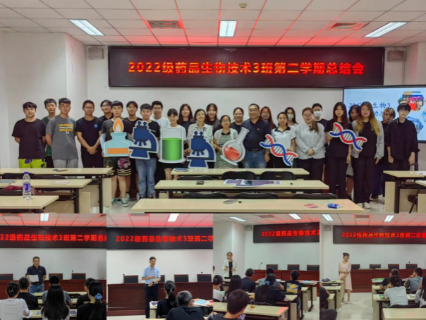 2022级药品生物技术3班于2023年7月5日下午在生物工程学院433召开了第二学期总结会。学院党总支书记齐友明、副书记刘青山、副院长李双石、生物技术系主任金丽华、学校党政办公室党支部孙跃等多位老师受邀参加了此次总结会,并对班级工作进行了点评。