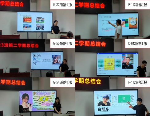 总结会按宿舍划分为3场,宿舍长作主持人,每场10人,逐一总结汇报。每位同学都精心准备了PPT,通过丰富的图片分享了本学期的校园生活和收获感想,提出了自己需要解决的问题和假期计划。班主任赵新颖老师对每位同学的情况都进行了点评,并给出了相关建议。