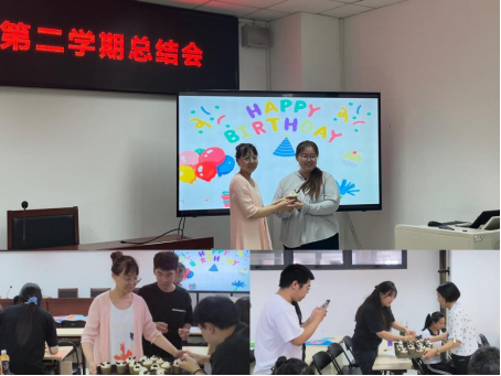 总结会当天正值吴伊凡和刘景浩生日,班主任赵新颖与校党办孙跃老师为同学们发送了小蛋糕,全班同学渡过了难忘的集体生日。