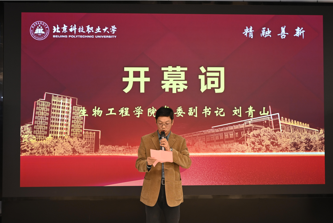 生物工程学院党委副书记刘青山致开幕词,他首先对到场的师生表示热烈欢迎,回顾了学院在社团文化与创新创业方面取得的丰硕成果,同时鼓励同学们要积极参与社团活动,勇于创新实践,为实现个人价值与社会贡献而努力。
