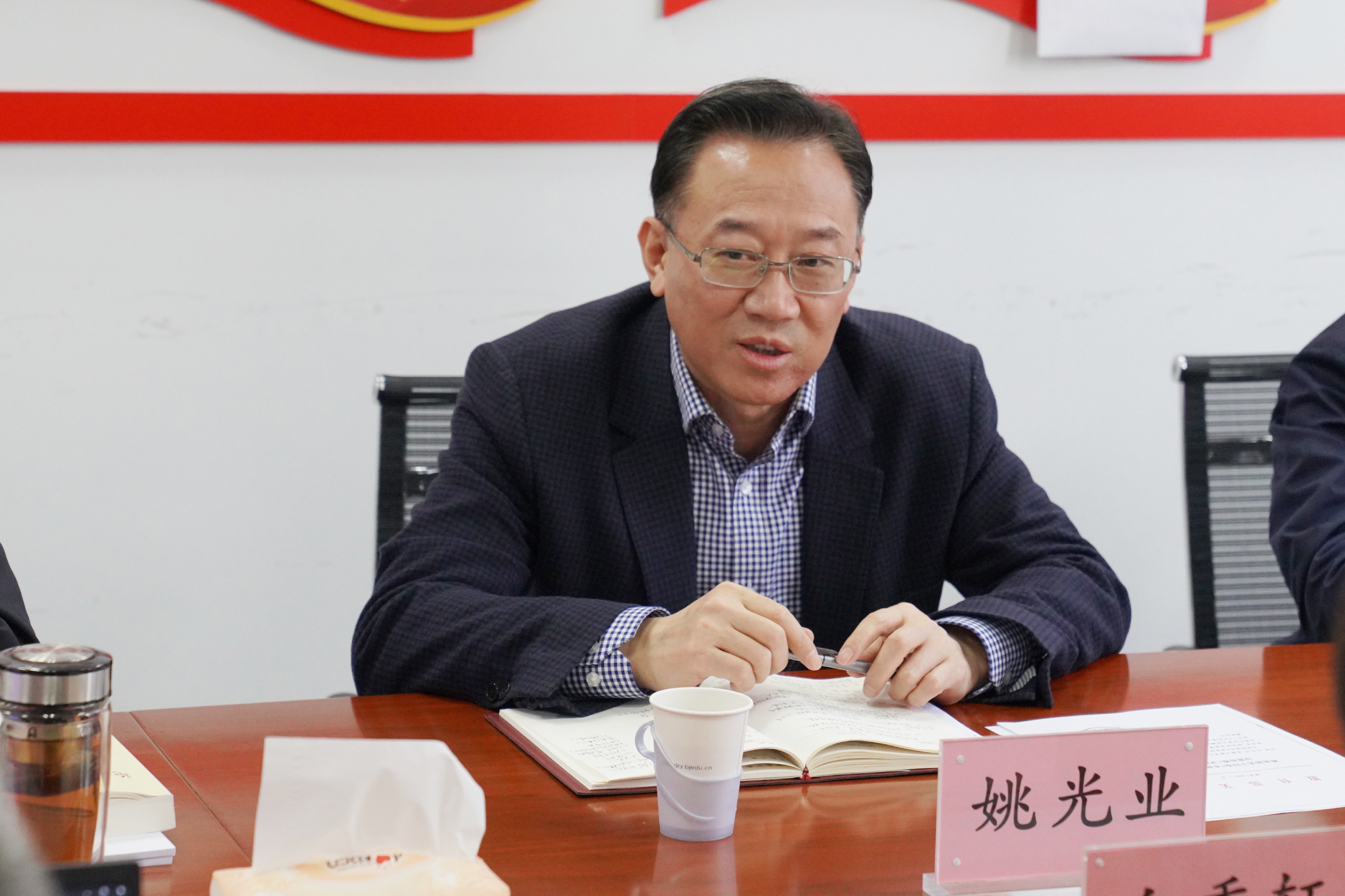 姚光业指出,思政课在学校人才培养中发挥了重要的传播知识、传播思想、筑牢根基作用,思政课教师为讲好思政课作出了有益探索。他强调,在学校发展新的阶段,要打造出学校思政课建设的特色和亮点,谋划好、建设好与学校发展目标相匹配的马克思主义学院;思政课课程内容与课程设计要结合高等职业教育特点,结合学校专业特点,结合学生实际,切实发挥好课堂作用;要加强学科研究,力争在社科基金项目研究上有突破,不断用学术成果夯实思政课底蕴;要加强与其他高校和兄弟院校的交流与合作,不断开拓理论视野、研究视域和工作视距,争取在职业院校思政课建设中走在前面、成为标杆;要不断优化思政课教师队伍数量、质量和结构,激发内在动力,不断营造自觉开展学习、善于学术研究、精于课堂授课的马克思主义理论教学科研氛围。